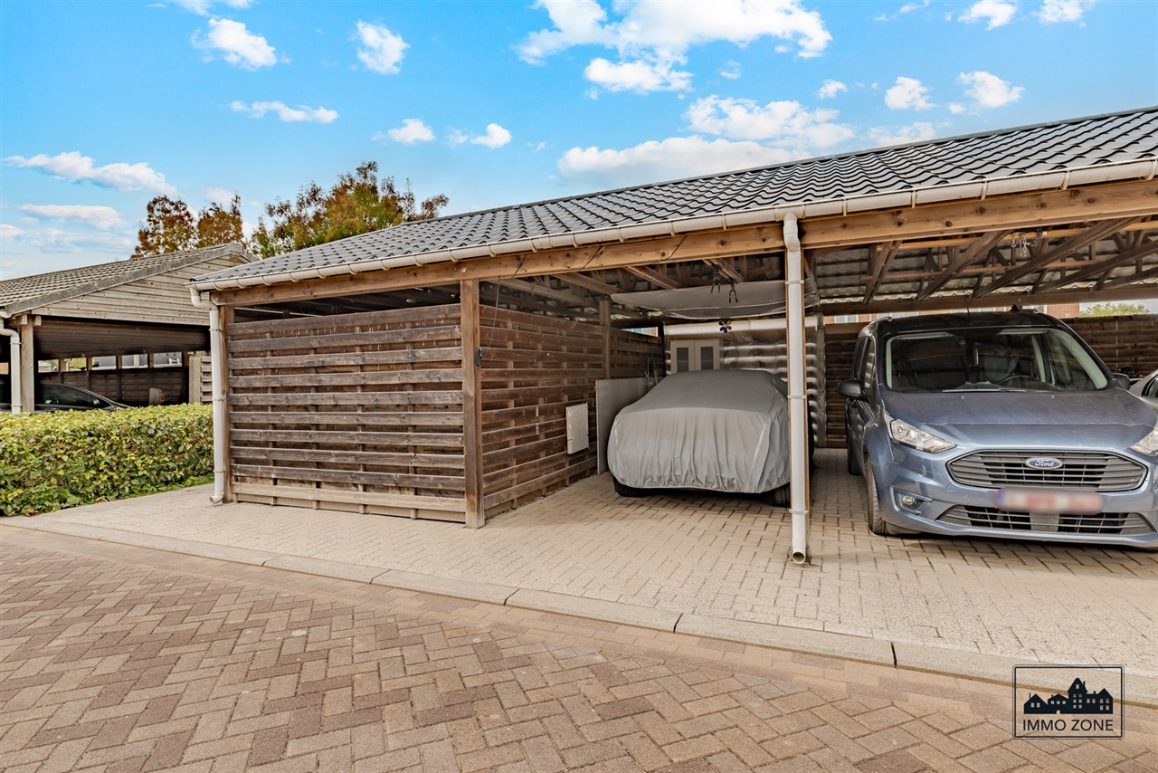 Als kers op de taart is er een bezoekersparking aanwezig. Ook is er een carport + privé staanplaats verplicht aan te kopen voor 16.000 euro zodat u steeds zorgeloos de wagen(s) kan parkeren. Ook is er een fietsenberging aanwezig.