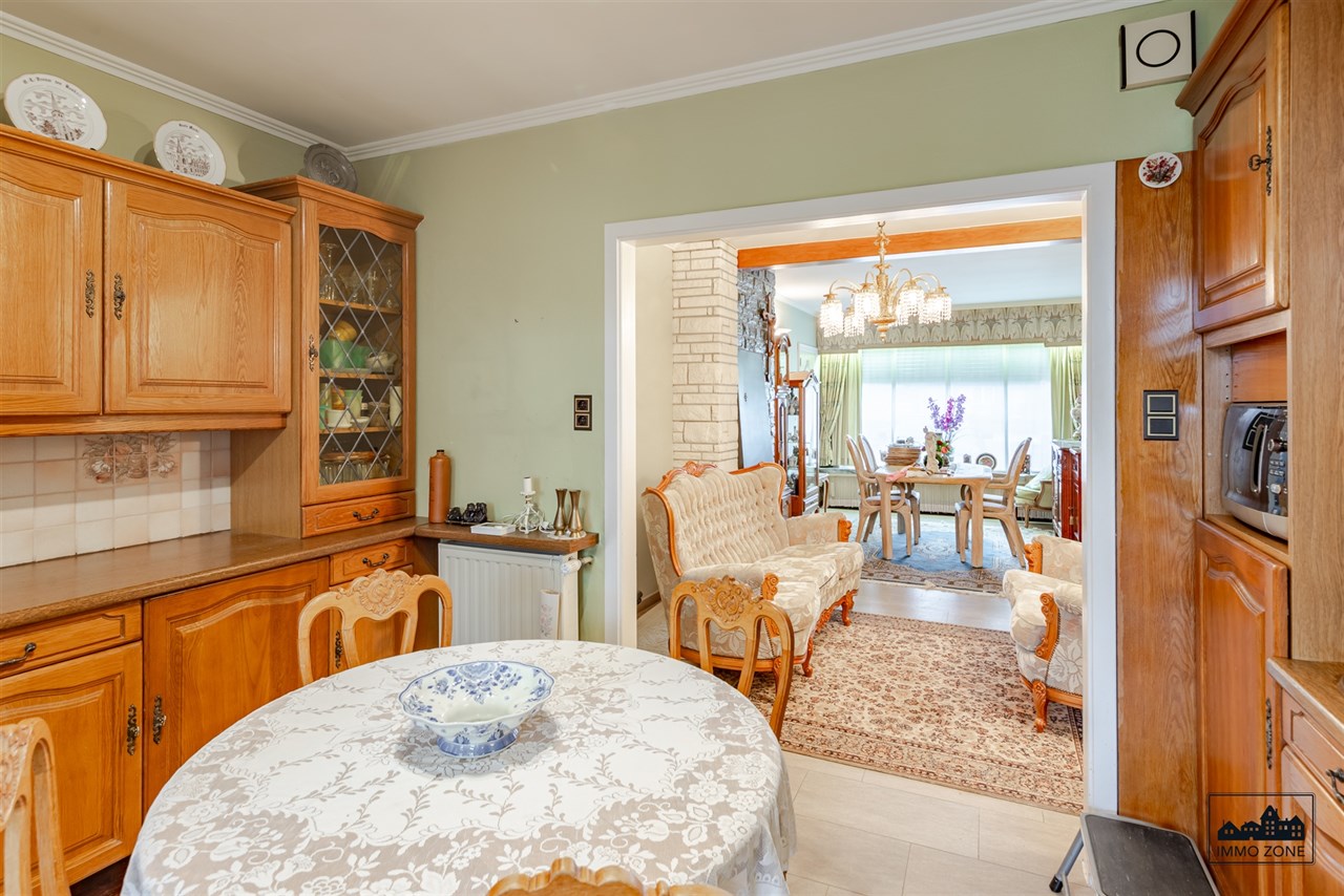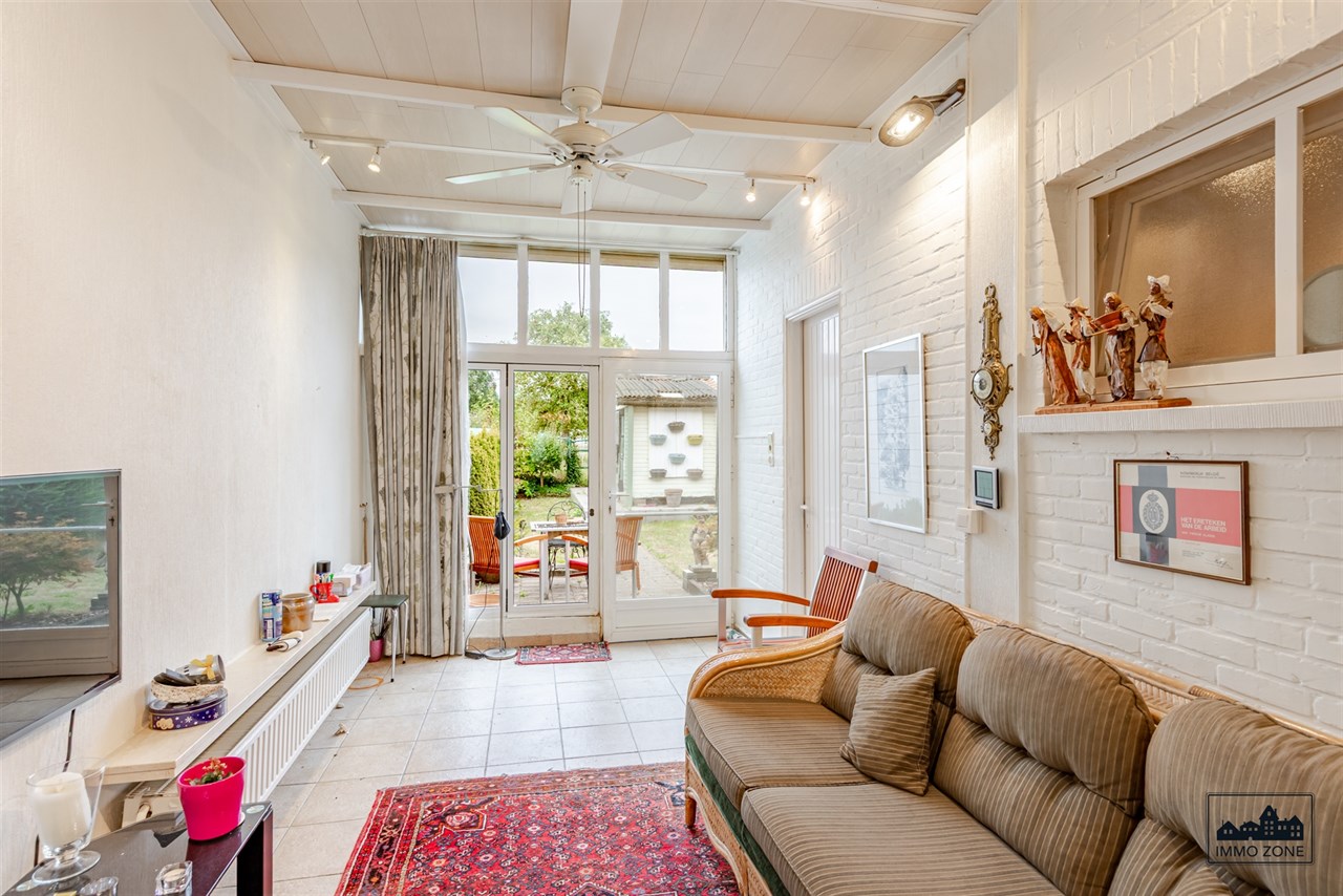 De leefruimte straalt een ruim en lichtrijk gevoel uit en sluit aan op de keuken. Aan de keuken bevindt zich bovendien een veranda die directe toegang geeft tot de gezellige tuin. Op het gelijkvloers is er ook een extra ruimte voorzien, ideaal voor het plaatsen van een wasmachine en droogkast. Deze ruimte is uitgerust met een kleinere keuken, ook wel bijkeuken genoemd.