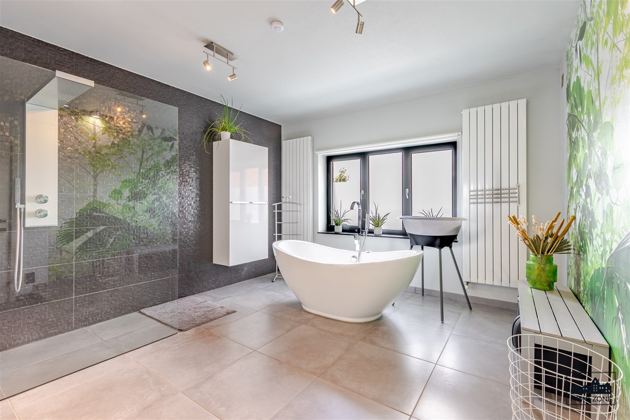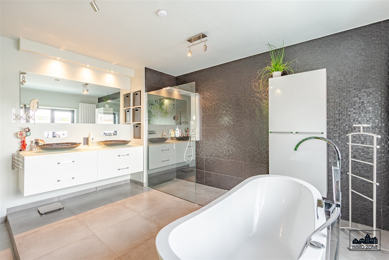 -Op de eerste verdieping bevinden zich de master bedroom met ingebouwde kasten en dressing, een luxueuze badkamer, een afzonderlijk toilet en een praktische wasruimte.