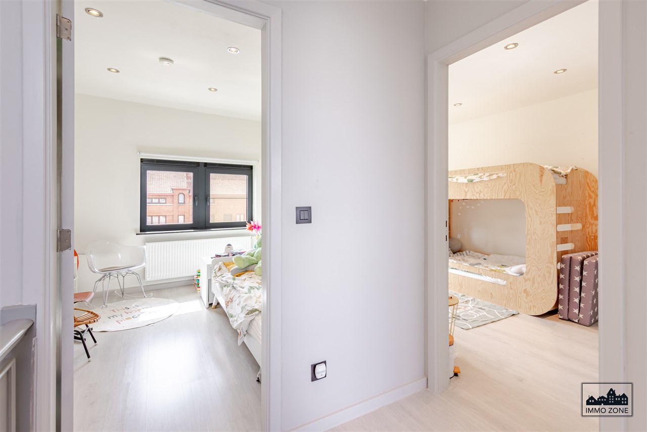 -De tweede verdieping telt drie slaapkamers: twee aan de voorzijde (waarvan 1 met ingemaakte kasten) en een derde kamer met dakkapel, die toegang geeft tot een charmante mezzanine — perfect als leeshoek, hobbyruimte of extra slaapgedeelte.