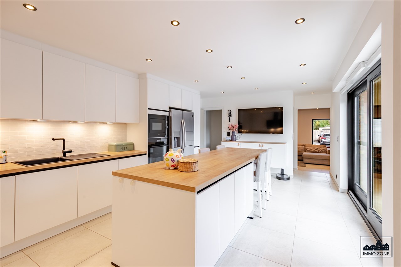 Wanneer u de woning betreedt wordt u ontvangen in de inkomhal. De inkomhal biedt rechtstreeks toegang tot de zeer ruime leefruimte. Na de leefruimte bevindt zich de volledig geïnstalleerde keuken met kookeiland. De keuken biedt uitzicht op de leuke tuin met terras, bbq en tuinhuis. Verder is er een aparte wasplaats aanwezig met een apart toilet.