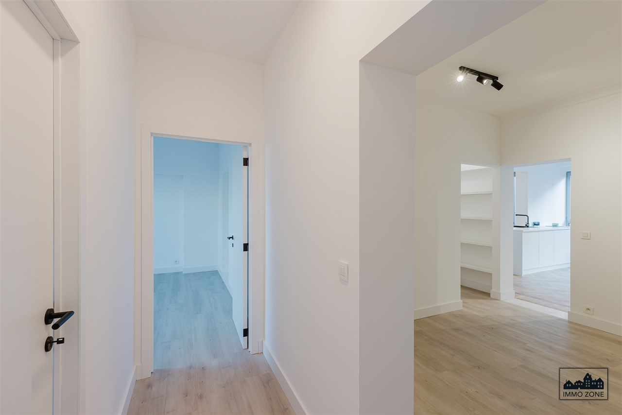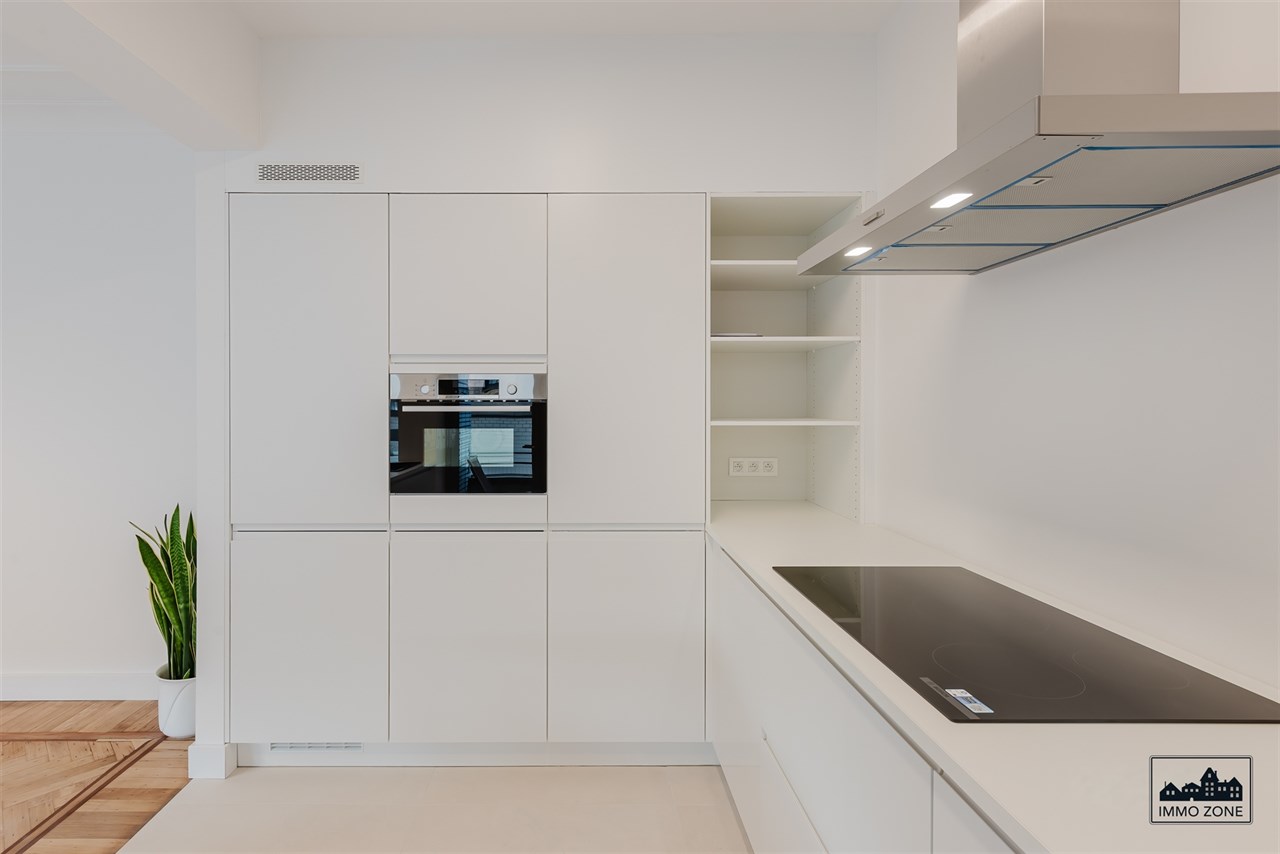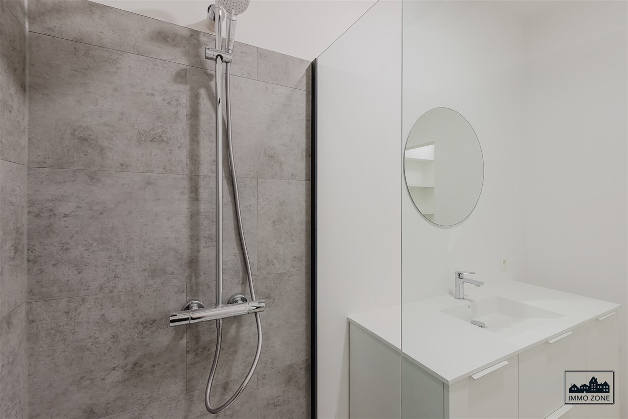 De leefruimte vormt, samen met de keuken, het hart van het appartement. De keuken is volledig uitgerust met alle toestellen en biedt directe toegang tot een aangenaam terras. Dit terras biedt niet alleen extra bergruimte, maar is ook perfect om te ontspannen. De keuken kan vrij gekozen worden binnen het vooropgestelde budget, en wordt geleverd door Kvik in Sint-Niklaas.