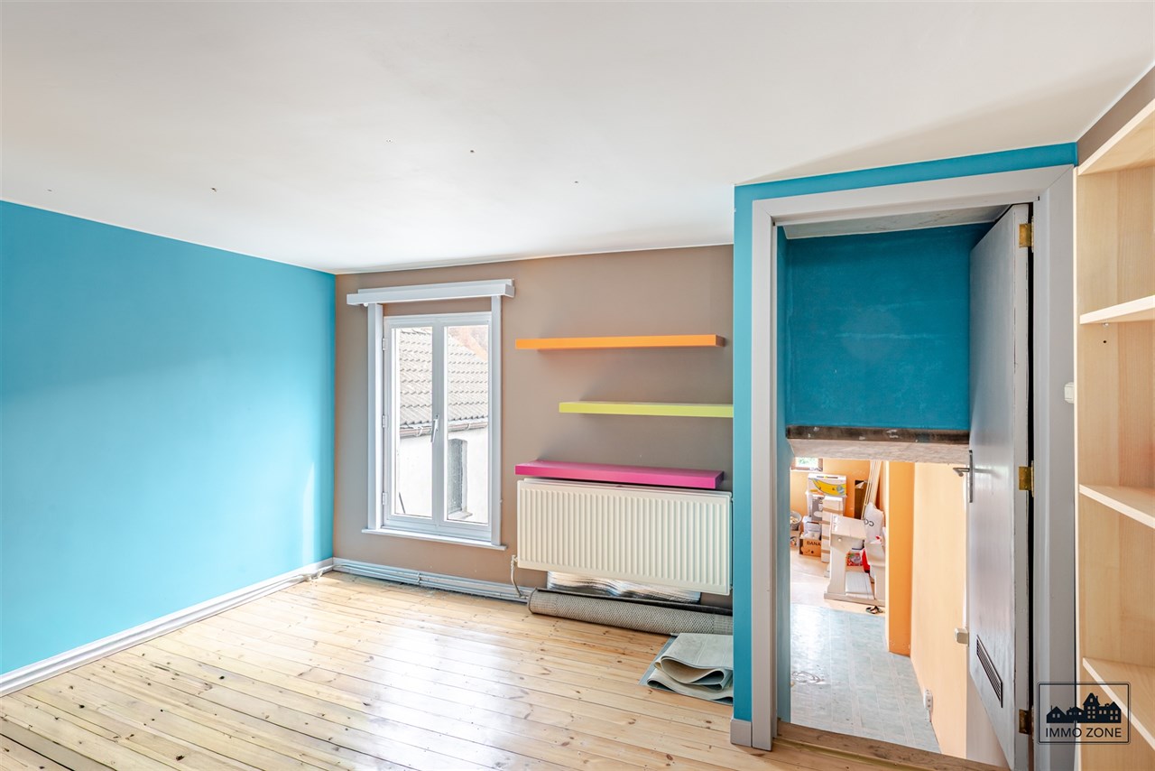 Wanneer u de trap neemt naar de eerste verdieping, ontdekt u twee ruime slaapkamers van respectievelijk 12 m², 14 m². Eén van deze kamers doet dienst als doorloopkamer, wat extra mogelijkheden biedt voor een dressing of bureau.