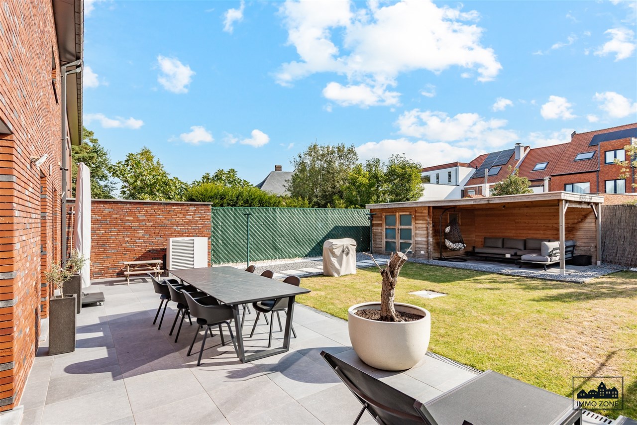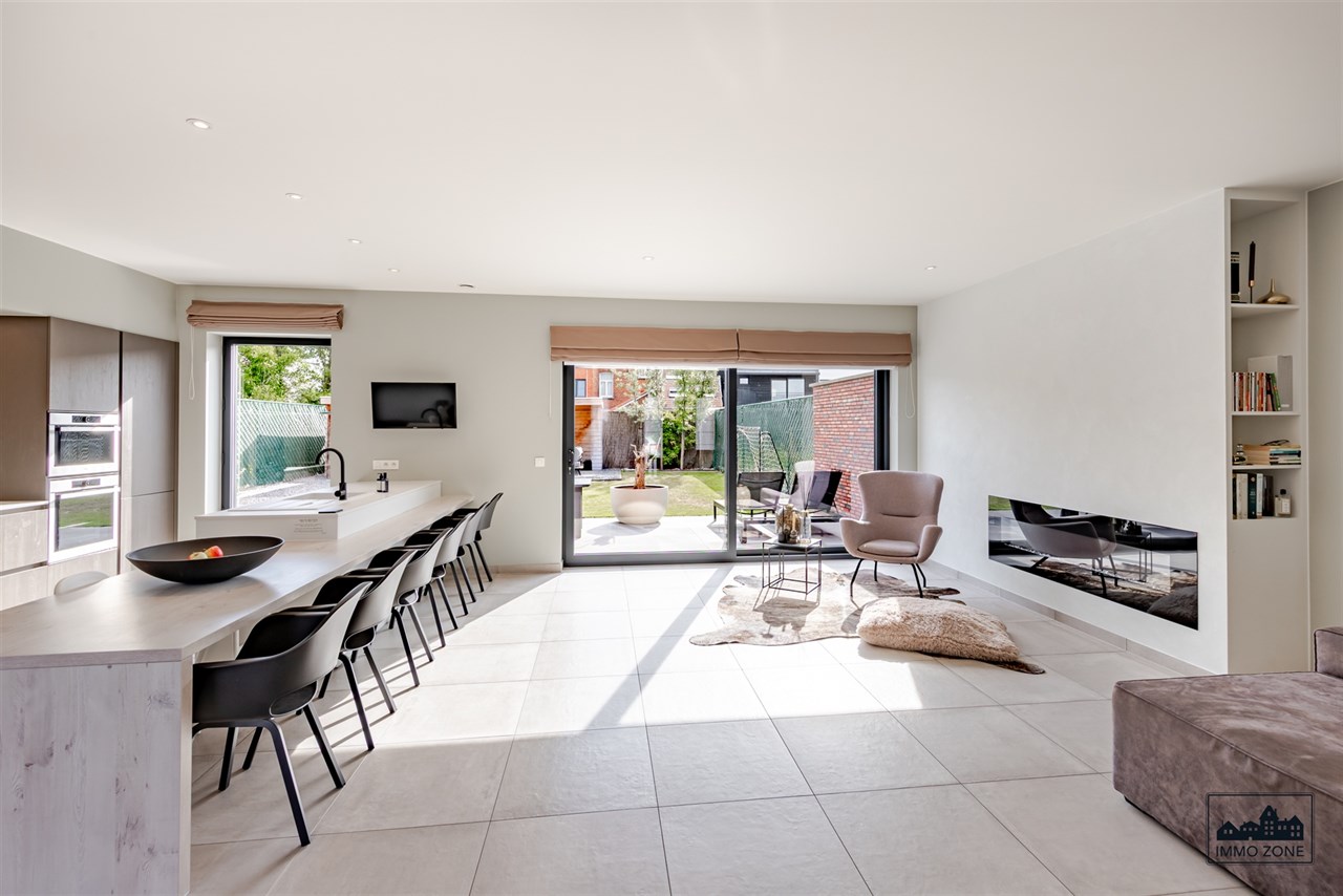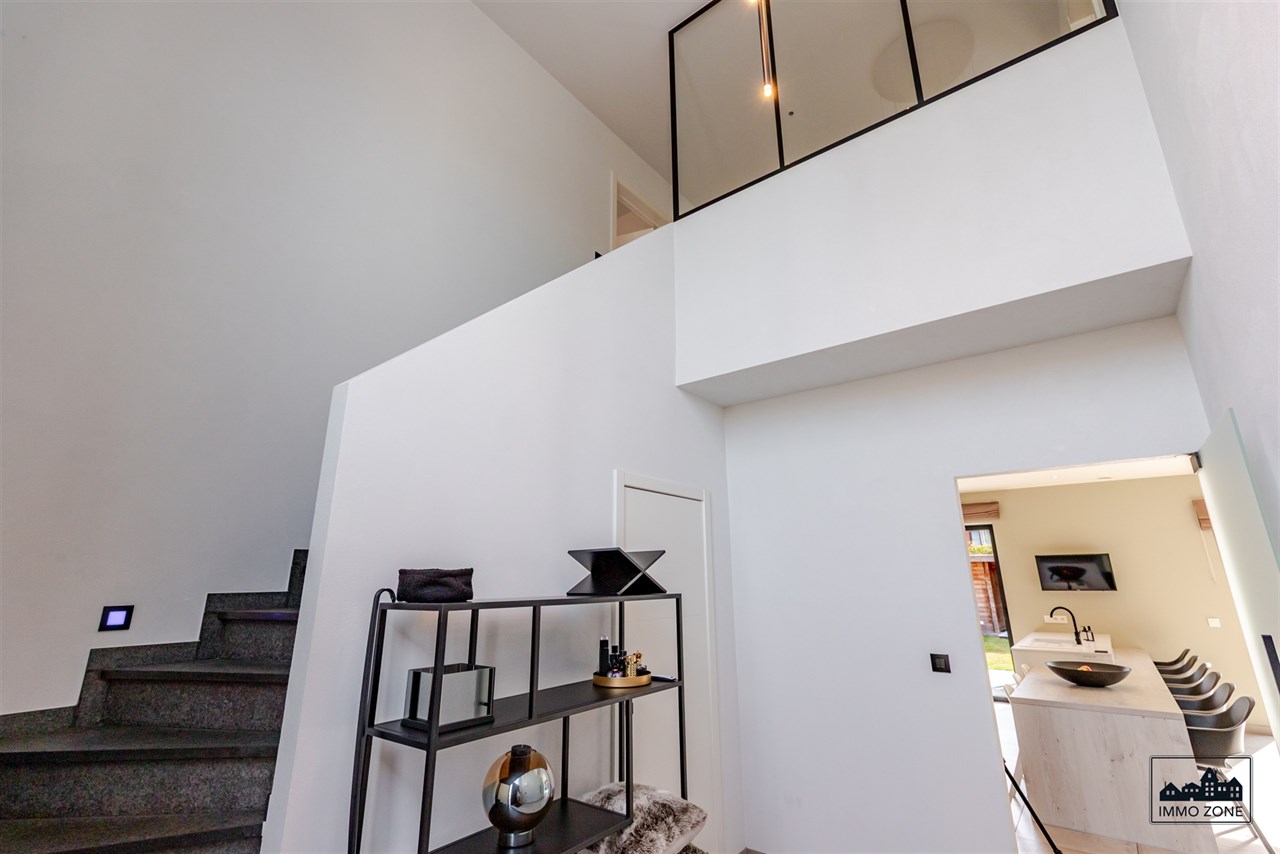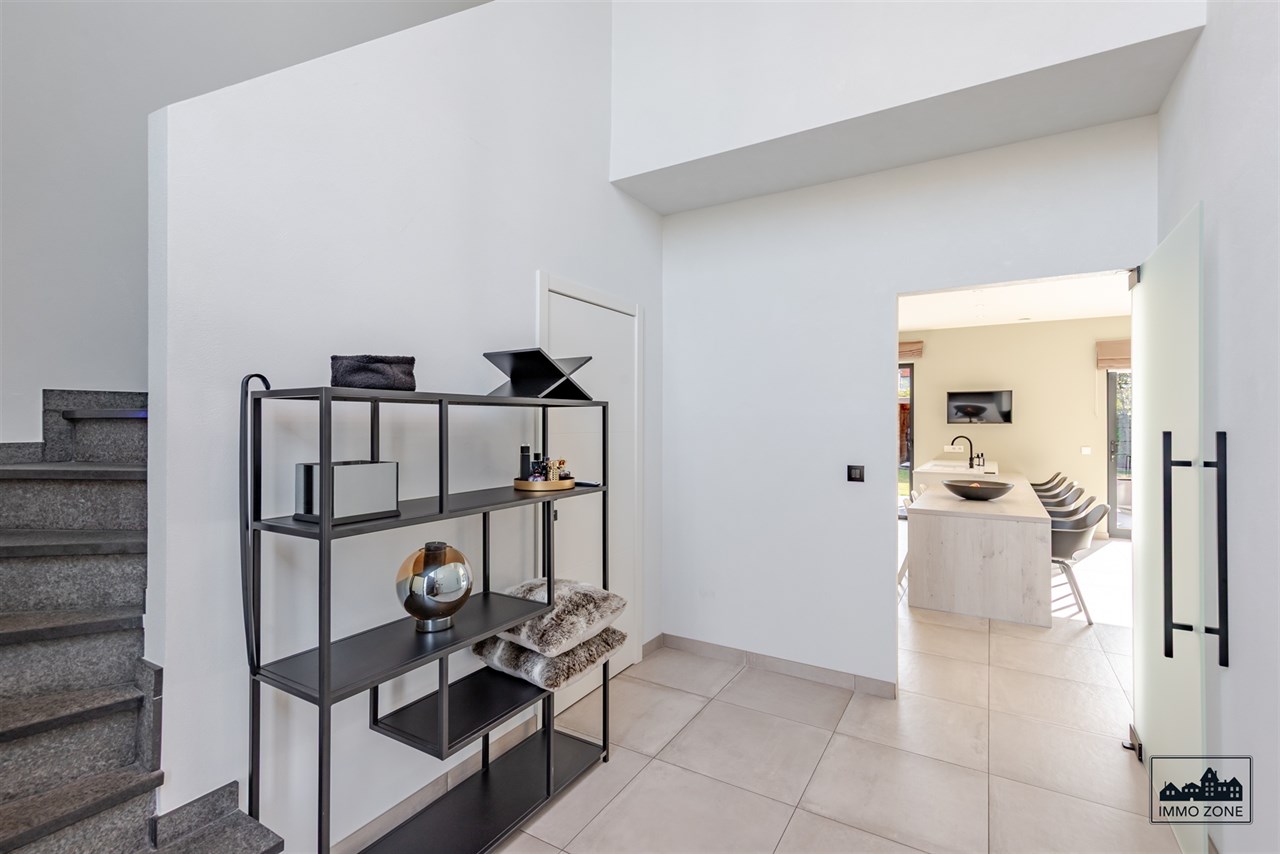 Bij het betreden van de woning komen we in een prachtige inkomhal met open vide en gastentoilet. Deze brengt u naadloos naar de open keuken ingericht met alle toestellen dewelke een perfecte connectie biedt met de eetplaats die van een prachtig zicht geniet op de aangelegde tuin. De woning beschikt over een prachtig terras, tuinhuis met lounge en een aangename zonnige tuin.