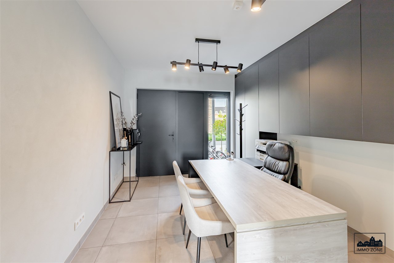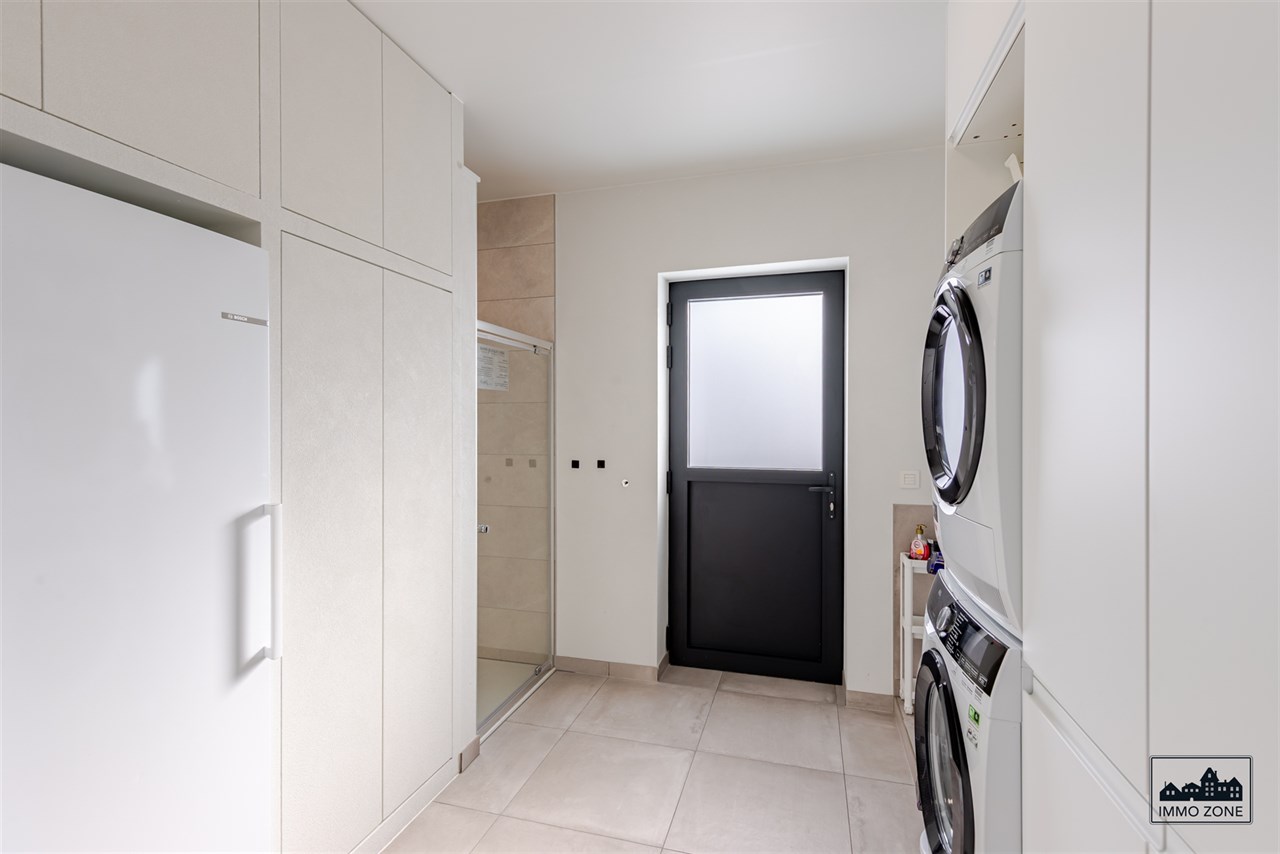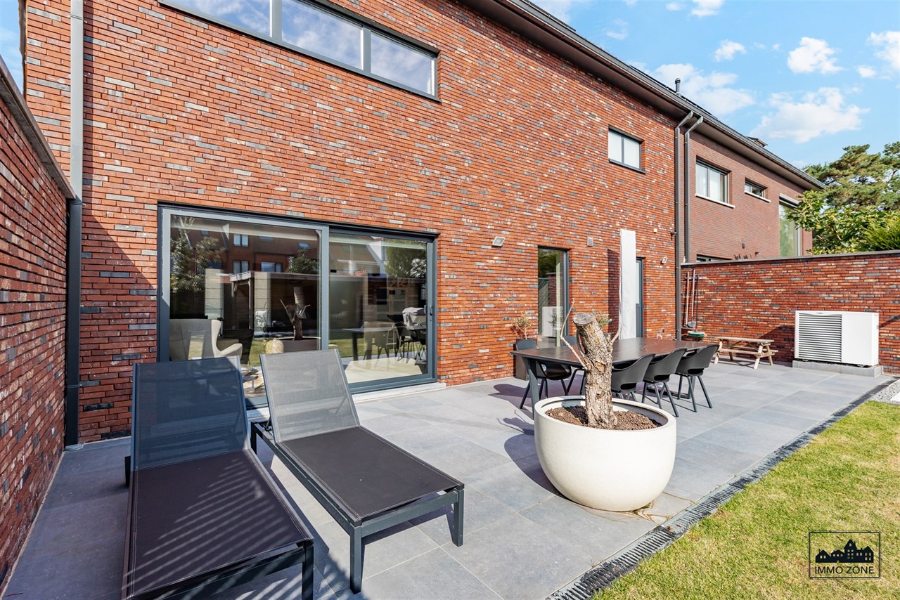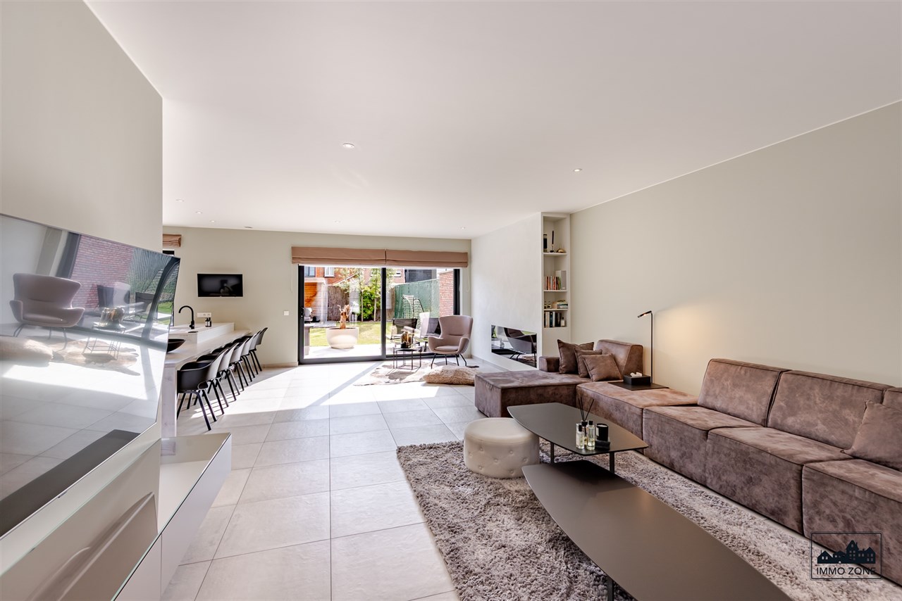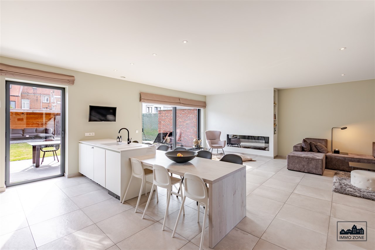 Bij het betreden van de woning komen we in een prachtige inkomhal met open vide en gastentoilet. Deze brengt u naadloos naar de open keuken ingericht met alle toestellen dewelke een perfecte connectie biedt met de eetplaats die van een prachtig zicht geniet op de aangelegde tuin. De woning beschikt over een prachtig terras, tuinhuis met lounge en een aangename zonnige tuin.