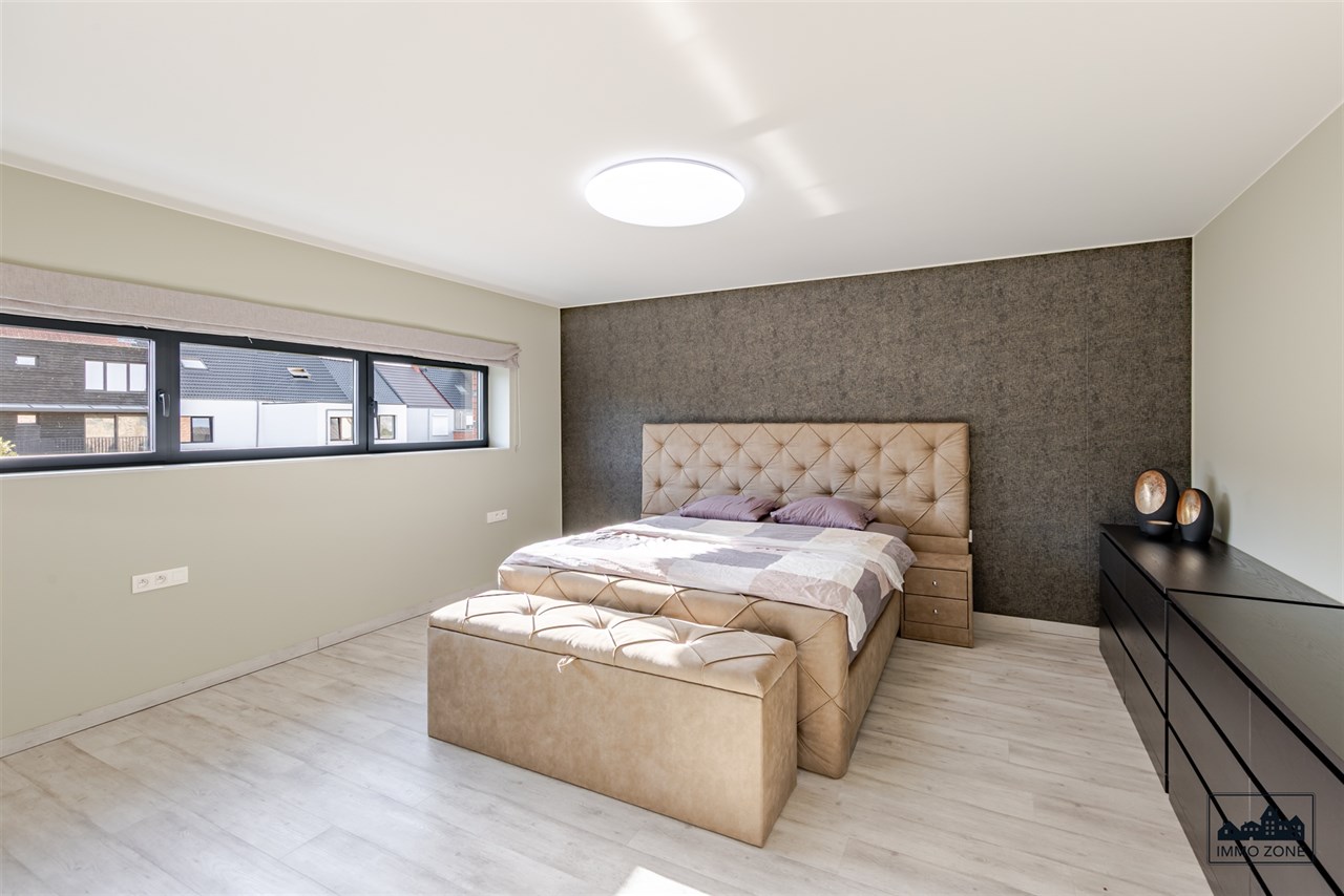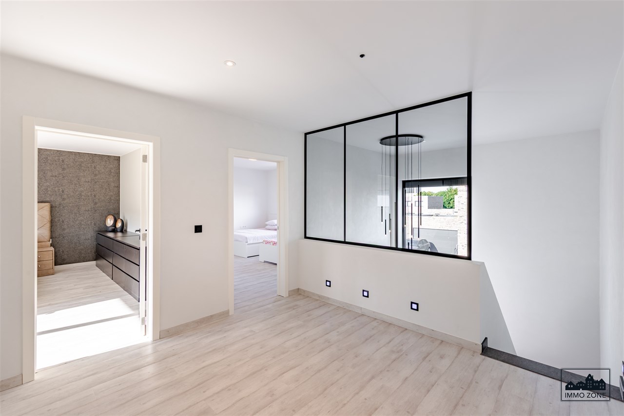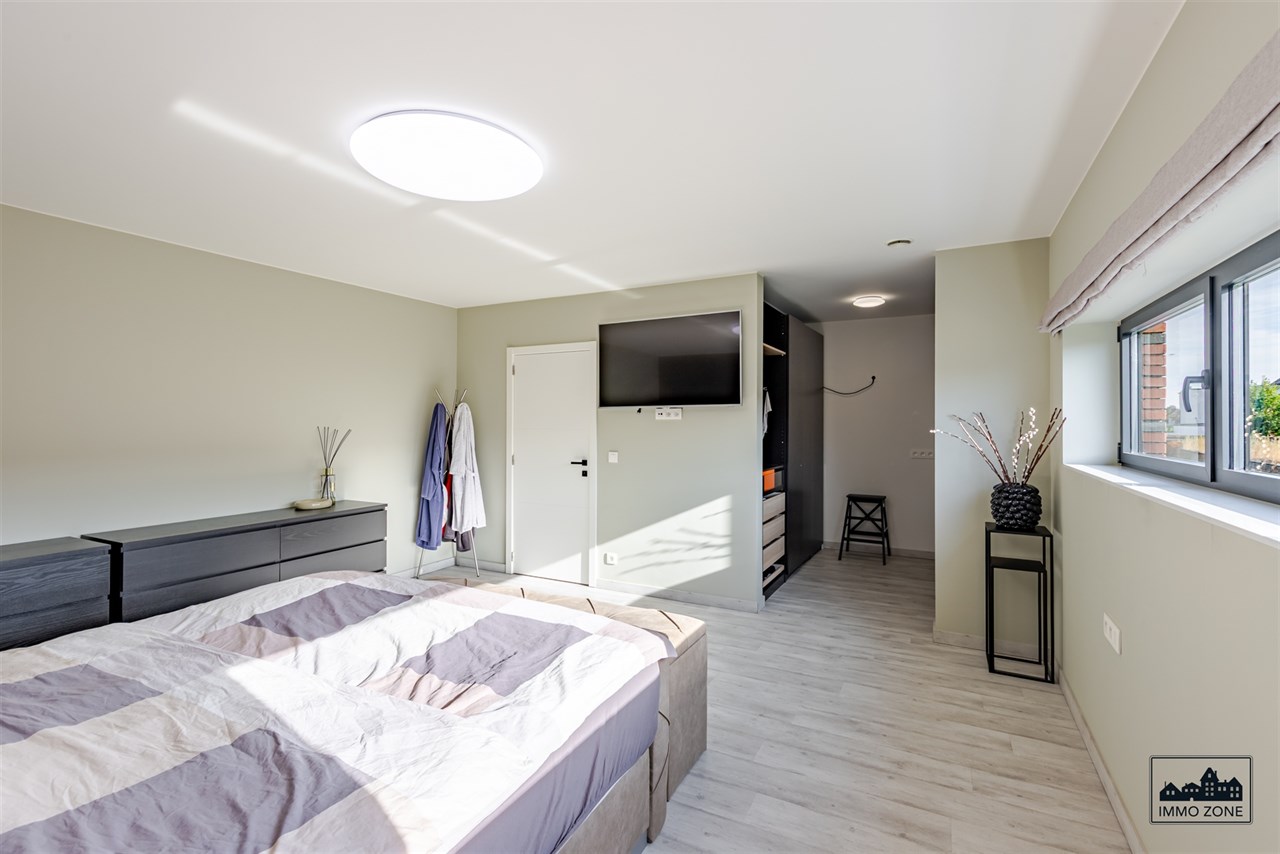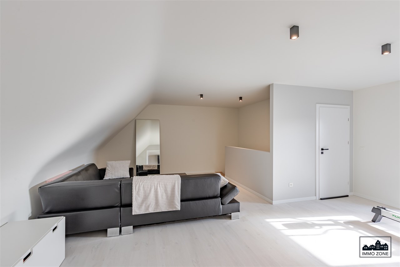 Op de eerste verdieping vinden we 2 ruime kinderkamers, een masterbedroom met dressing én een badkamer met dubbele lavabo, ligbad, douche en toilet.