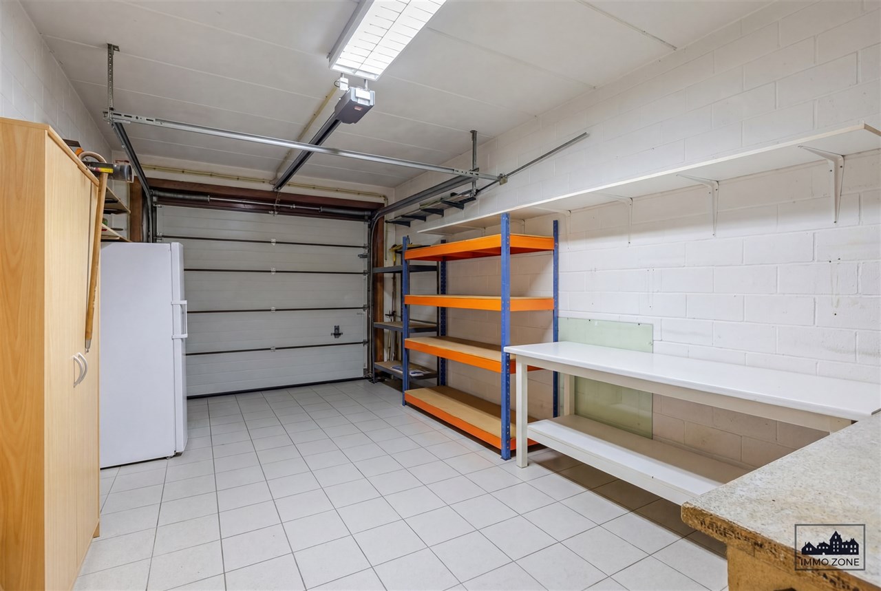 Op het gelijkvloers vindt u een ruime inkomhal met gastentoilet en vlotte trap met bordes, een lichtrijke woonkamer, een aparte leefkeuken met eetplaats en een afzonderlijke ruimte die kan dienen als slaapkamer, bureau of praktijkruimte. Verder zijn er een berging/wasruimte met douchecabine, een ruime garage met oprit en een carport met lange oprit.