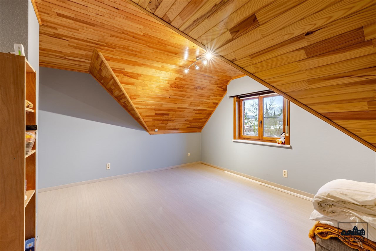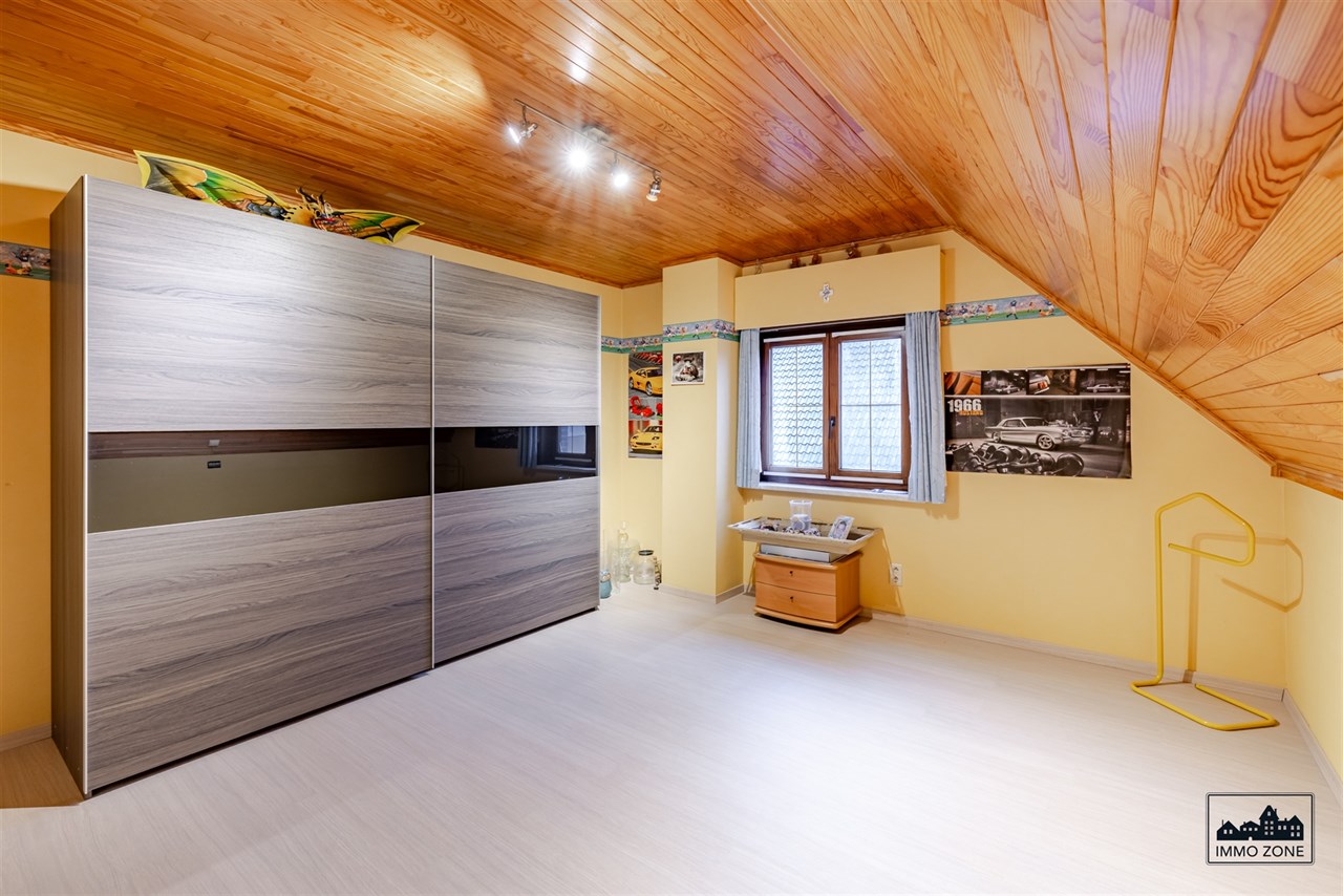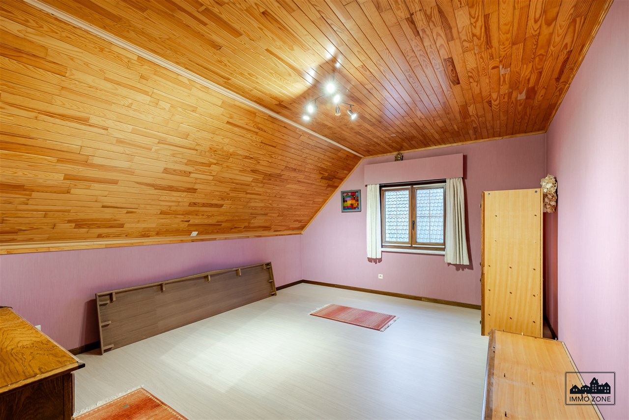 De eerste verdieping omvat vijf grote slaapkamers, centraal ontsloten via een nachthal, en een badkamer met ligbad, lavabo en toilet. Via een vaste trap bereikt u de ruime zolderverdieping met mogelijkheden voor bijkomende kamers of hobbyruimte.