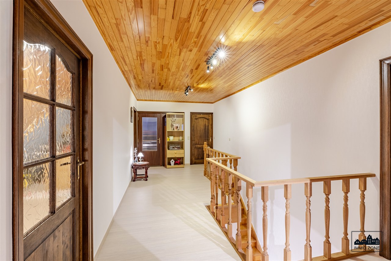 De woning is degelijk opgebouwd en afgewerkt met kwaliteitsvolle materialen, waaronder massieve eiken binnendeuren en een massieve beuken trap. Daarnaast beschikt ze over een kelder, goede isolatiewaarden, 20 zonnepanelen, een EPC-label C en conforme elektriciteit bij akte.