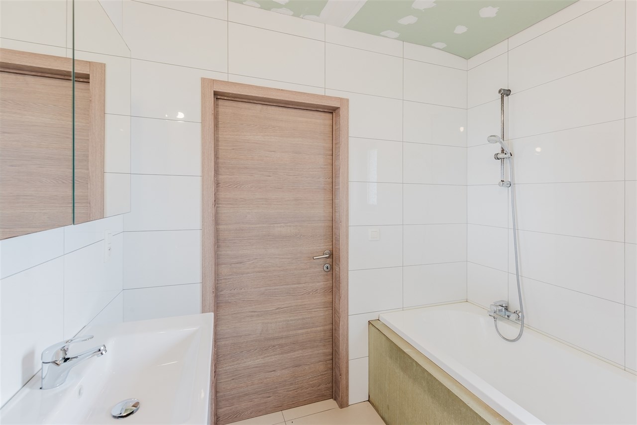 Bovenliggend zijn er 4 appartementen aanwezig met telkens: inkomhal met apart toilet, badkamer met bad/douche met lavabomeubel. Volgend is er een grote centrale leefruimte met aansluitend een praktische ingerichte keuken en 2 mooie slaapkamers.