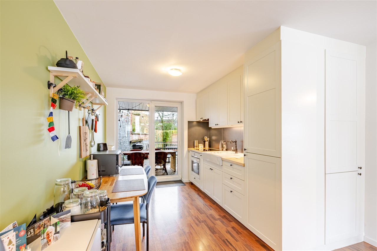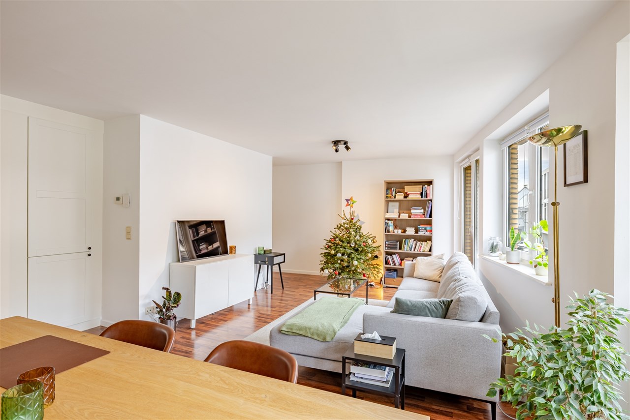Dit ruime appartement beschikt over v uit een lichtrijke woonruimte, met een recente ingerichte keuken. Een praktische berging met aansluiting voor wasmachine en droogkast, 2 slaapkamers, een badkamer met lavabo, toilet en douche/bad en een apart gastentoilet. Troef van het appartement is het deels overdekte, ruime terras van 24m² dat zuidoost georiënteerd is.