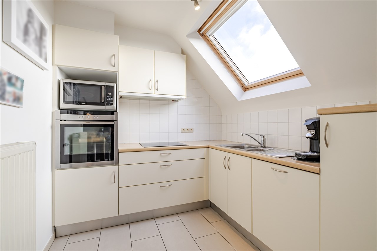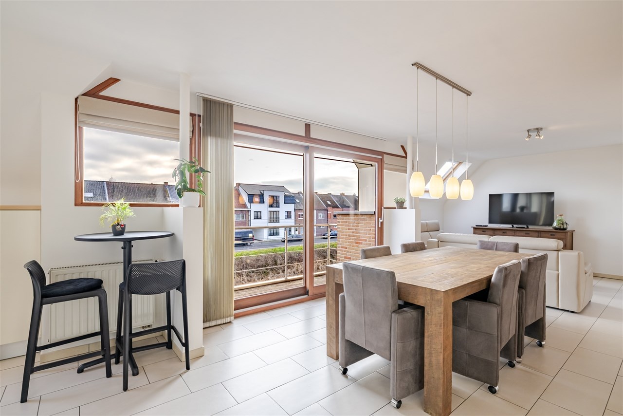 Het appartement heeft volgende indeling: een centrale hal met vestiaire gevolgd door een mooie lichtrijke leefruimte (30m²) met toegang tot een aangenaam zuid gericht terras. Verder is er een open ingerichte keuken met alle nodige toestellen. Aansluitend is er nog een handige bergruimte aanwezig, met plek voor wasmachine/droogkast. Dit appartement beschikt verder over 2 aangename slaapkamers (16m² & 9m²) en een badkamer met ligbad met douche combinatie, een dubbele lavabo en een apart toilet.