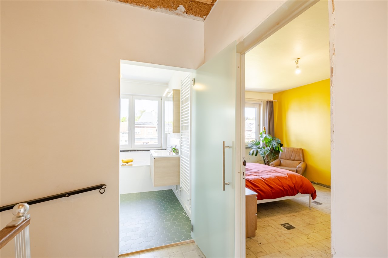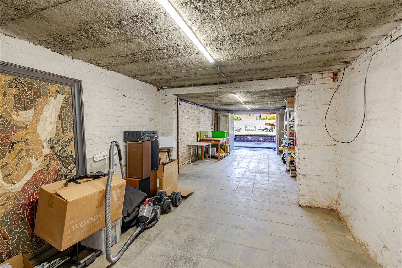 De woning is toegankelijk via de charmante voortuin (met parkeerplaats). Op het gelijkvloers beschikt de woning over lichtrijke leefruimte met open geïnstalleerde keuken, een berghal en apart toilet. Vanuit de keuken is er toegang naar de grote kelder en het aansluitende terras en achtertuin. Deze kelder (volledige oppervlakte woning) is praktisch onderverdeeld en geeft tevens toegang tot de tuin. Op de eerste verdieping beschikt de woning over 3 slaapkamers en een badkamer (met inloopdouche én ligbad). Via de inklapbare zoldertrap is er toegang tot de zolderruimte van 43m²(!).