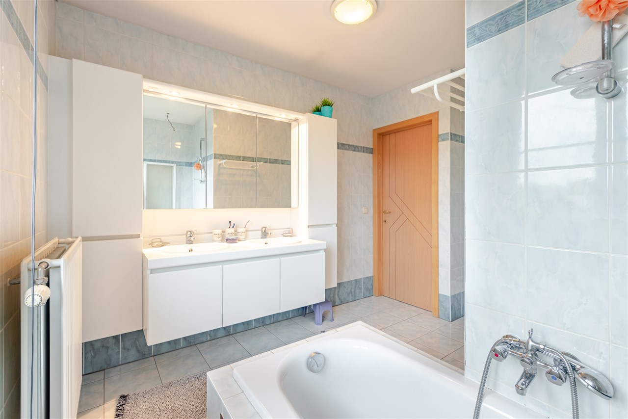 De indeling is als volgt: inkomhal met gastentoilet, gevolgd door de ruime en lichtrijke leefruimte met open keuken die voorzien is van een vaatwasser, oven, microgolf en keramische kookplaat. Aansluitend aan de keuken is een praktische berging/ wasplaats. Op de eerste verdieping vinden we 3 ruime slaapkamers en een badkamer die voorzien is van een douche in bad, dubbel badkamermeubel en tweede toilet.