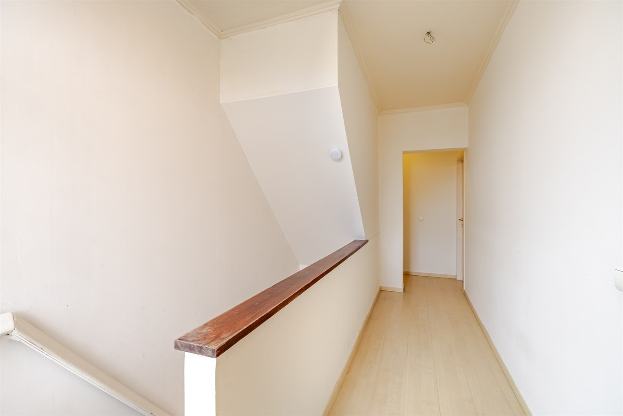 Indeling gelijkvloers: lichtrijke leefruimte met eetplaats en open keuken die zicht heeft op de tuin. Gelijkvloers is er ook al een eerste toilet. Op de eerste verdieping vinden we een ruime slaapkamer en een badkamer die voorzien is van een meubel, douche, ligbad en tweede toilet. Op de tweede verdieping vinden we nog een zeer ruime slaapkamer.