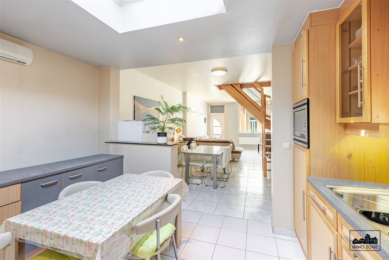 Indeling: lichtrijke leefruimte met open keuken die voorzien is van een oven, microgolf, frigo en kookplaat. Aansluitend aan de keuken is een berging en wasplaats. Ook vinden we gelijkvloers de badkamer die voorzien is van een badkamermeubel, toilet en douche in bad. Op de eerste verdieping vinden we 2 slaapkamers van 13m² en 16m². Op de tweede verdieping is nog een derde slaapkamer van 12m².