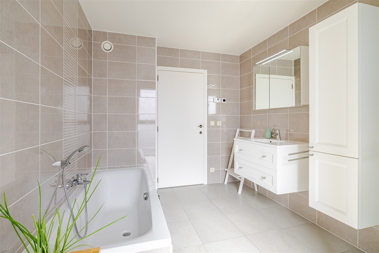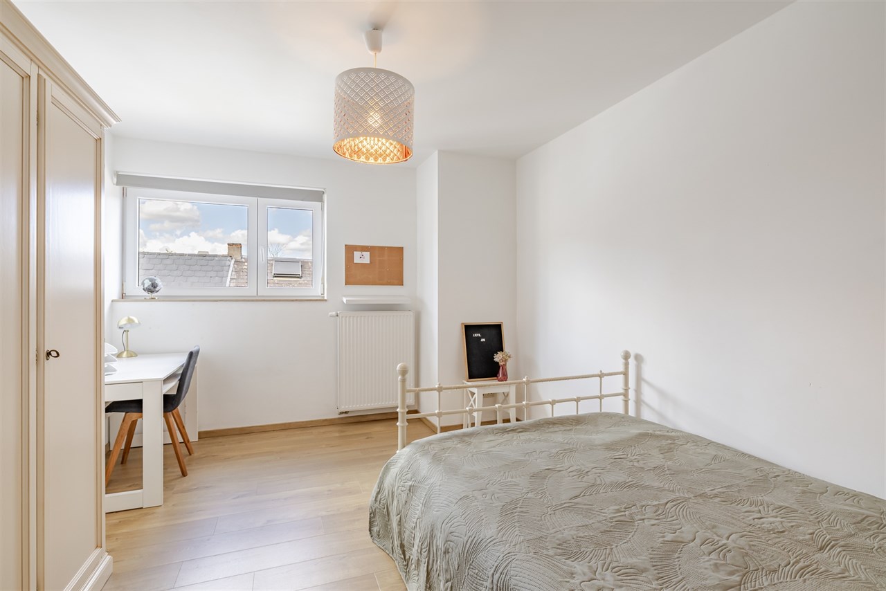 Op de tweede verdieping vinden we 3 ruime slaapkamers en een moderne badkamer die voorzien is van een meubel, ligbad en douche. Ook is er een afzonderlijk toilet voorzien. Op de derde verdieping vinden we een ruime zolder die kan omgebouwd worden tot vijfde slaapkamer of een prachtige hobbyruimte.