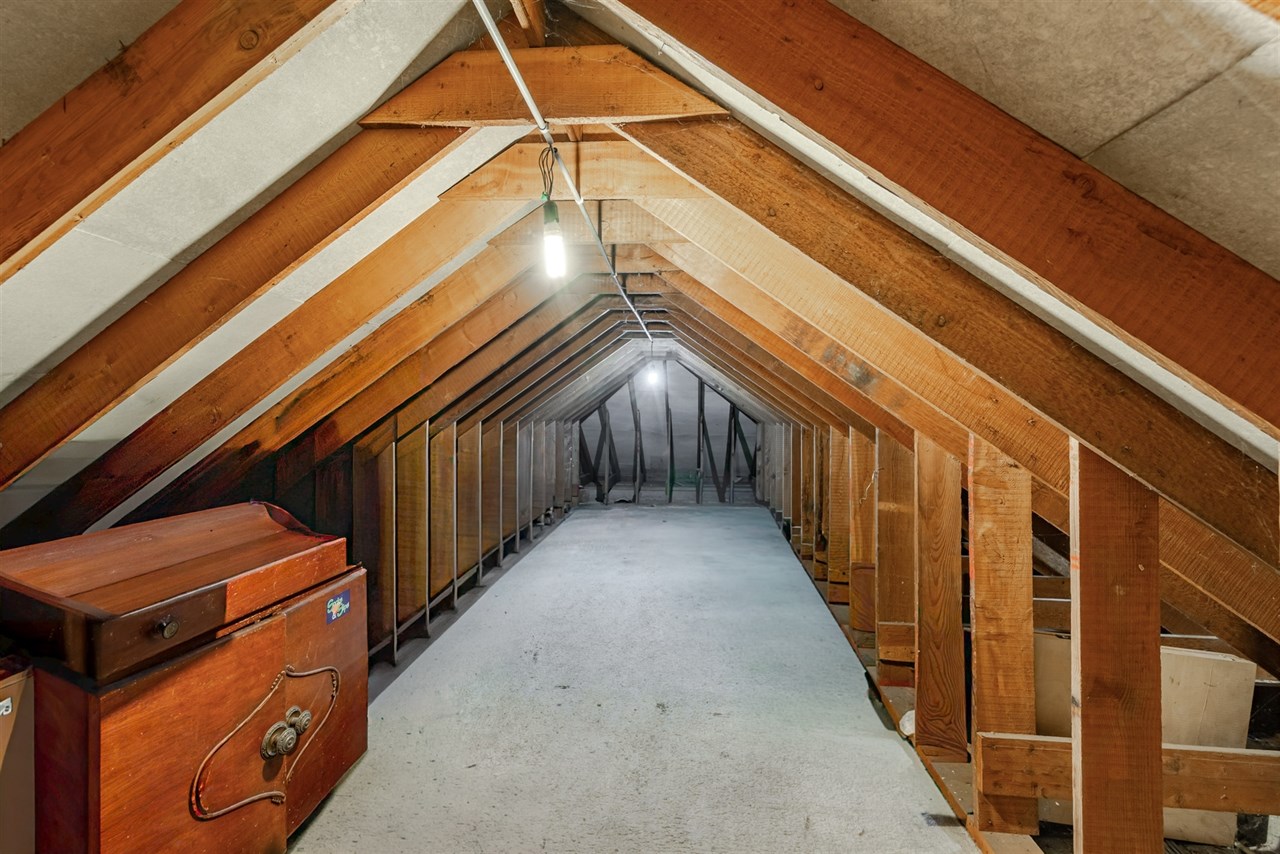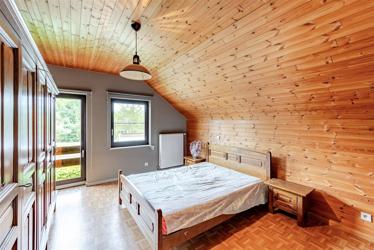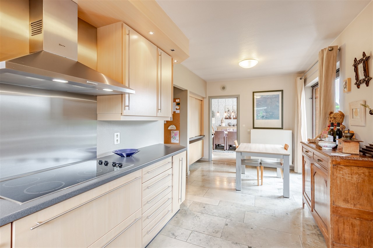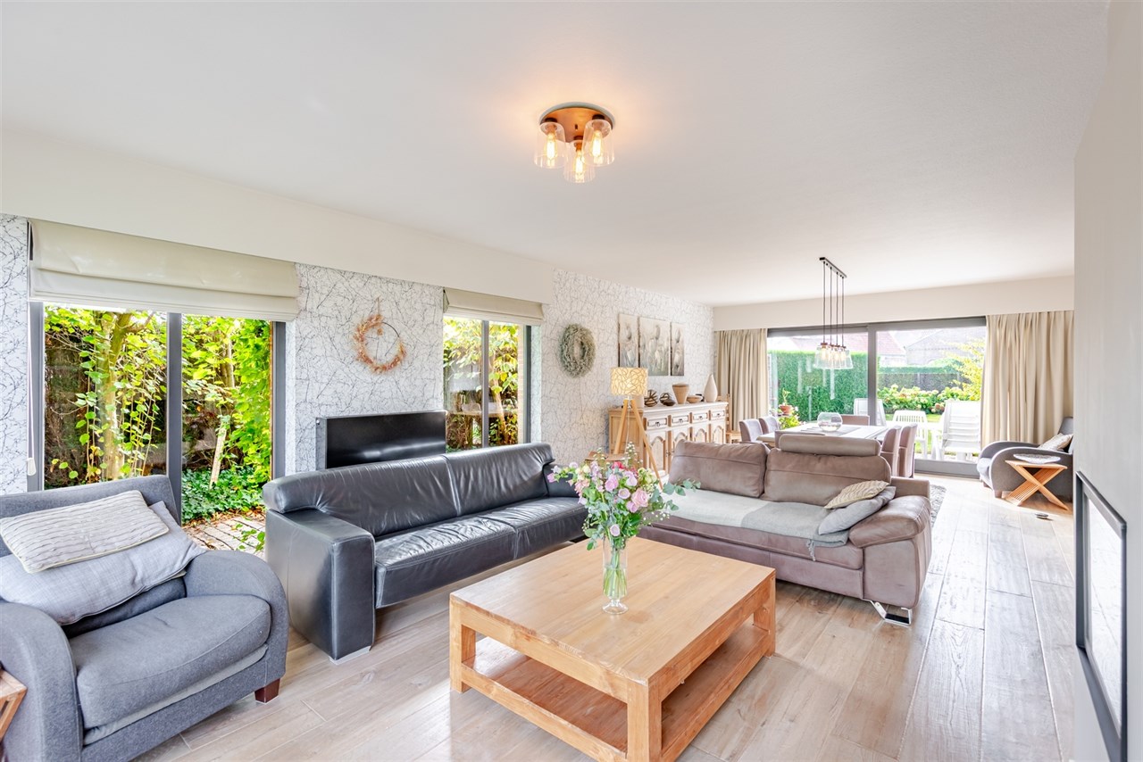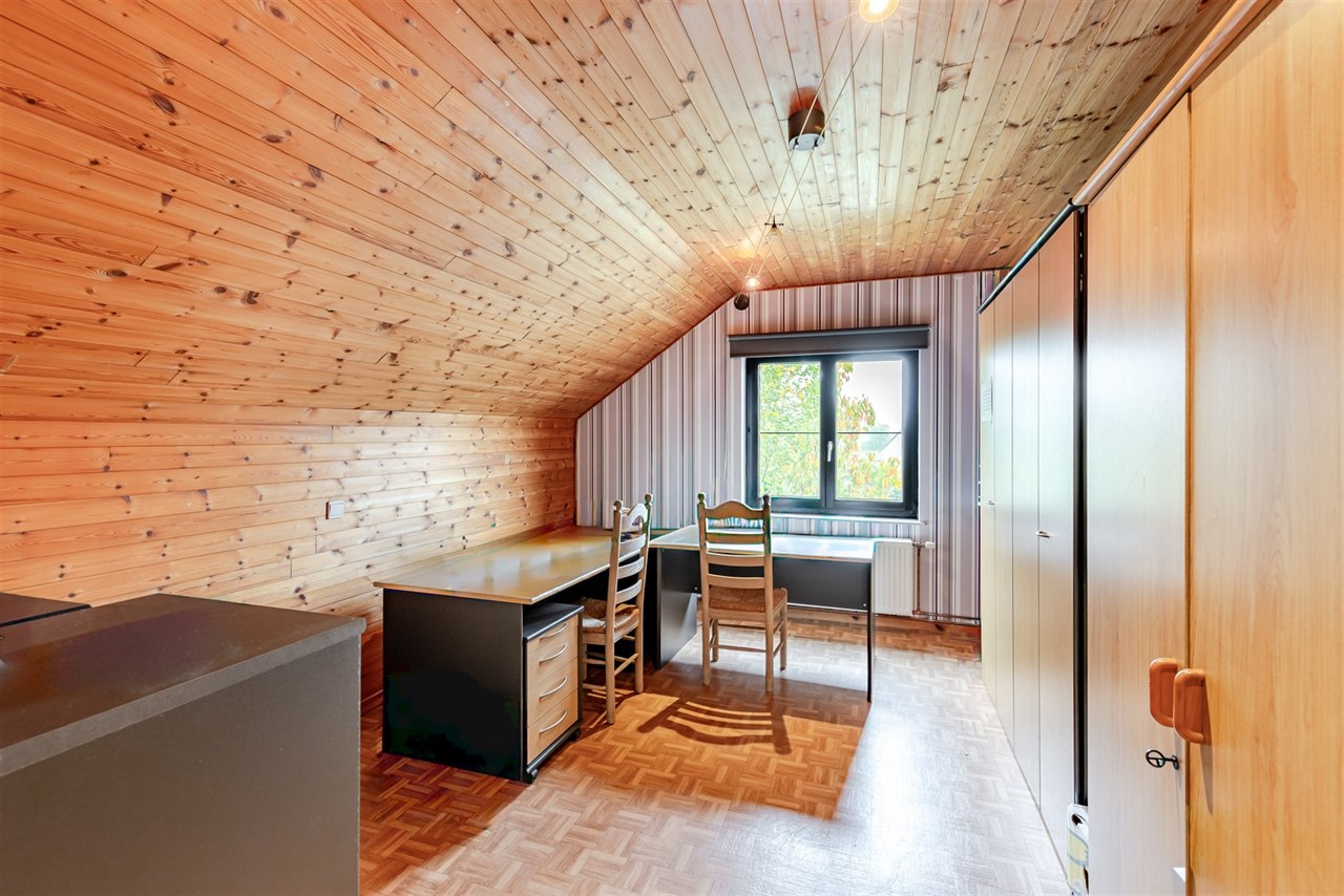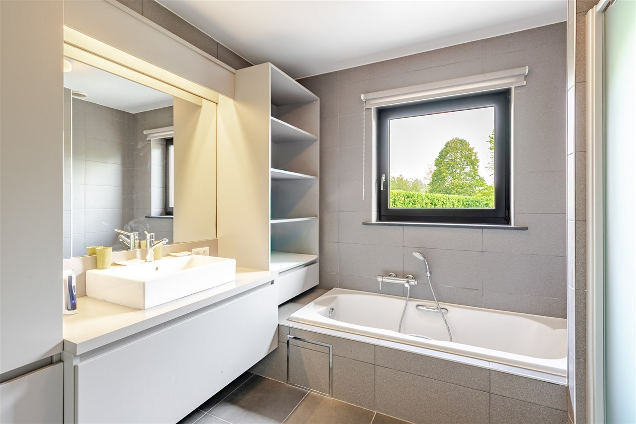 Indeling: inkomhal met toilet gevolgd door de ruime en lichtrijke leefruimte met zicht op de tuin. Verder vinden we de keuken die voorzien is van een vaatwasser, oven, microgolf, frigo en kookplaat. Aansluitend is een ruime berging/ wasplaats. Ook vinden we gelijkvloers al een eerste slaapkamer met ingebouwde kasten en de badkamer die voorzien is van een ligbad en douche. Op de eerste verdieping vinden we een nachthal met toilet en 3 ruime slaapkamers (14m², 16,5m² en 17m²). Daarnaast is er ook een zolder die extra bergruimte biedt. De woning beschikt bovendien over een inpandige garage met elektrische poort.