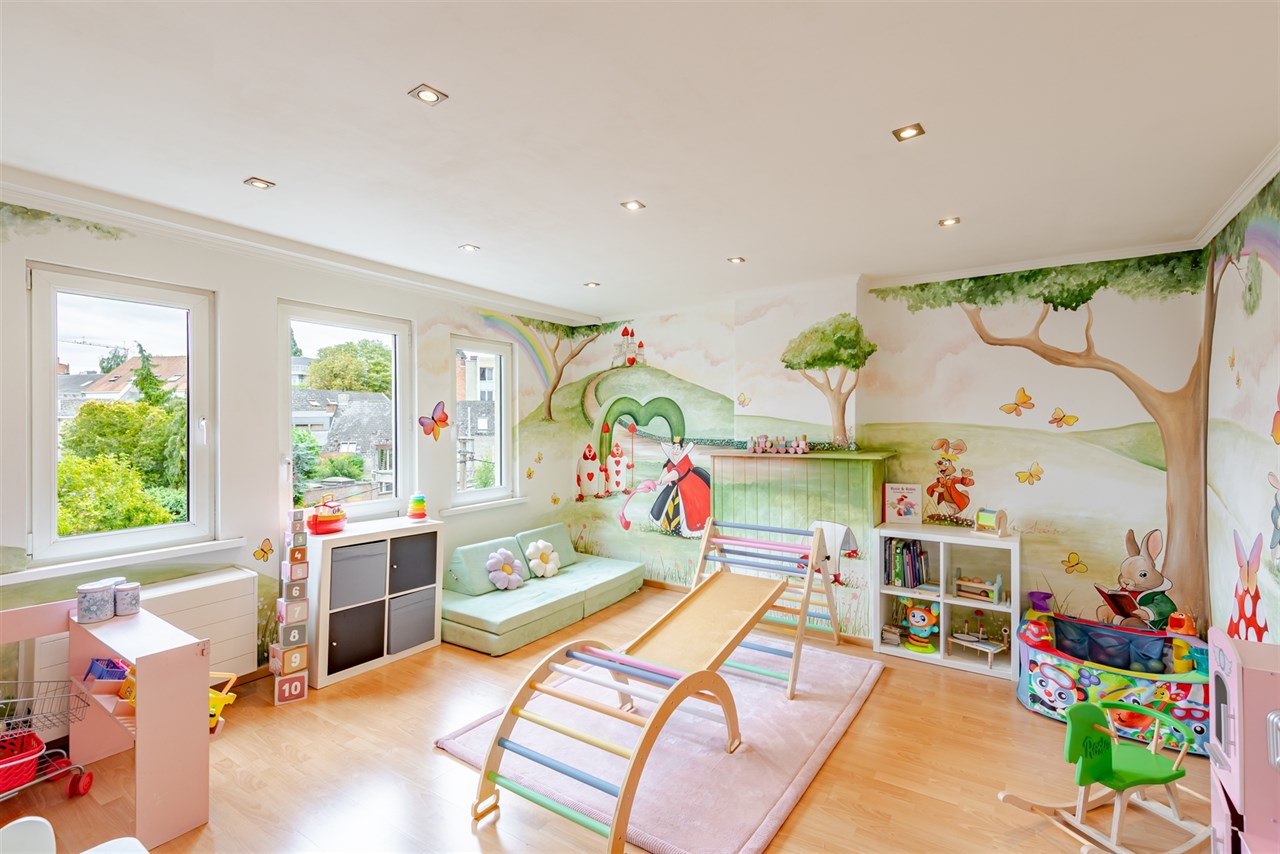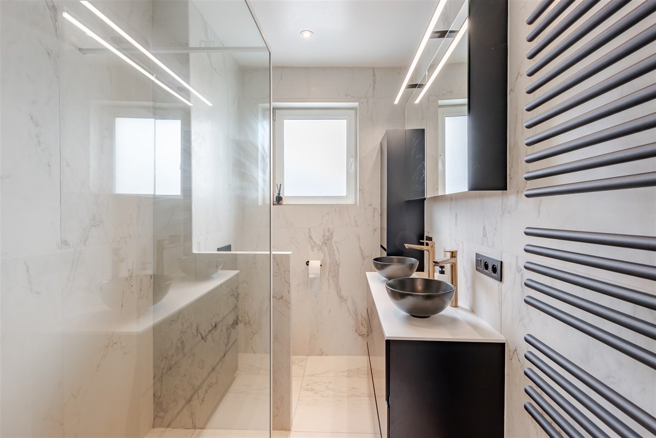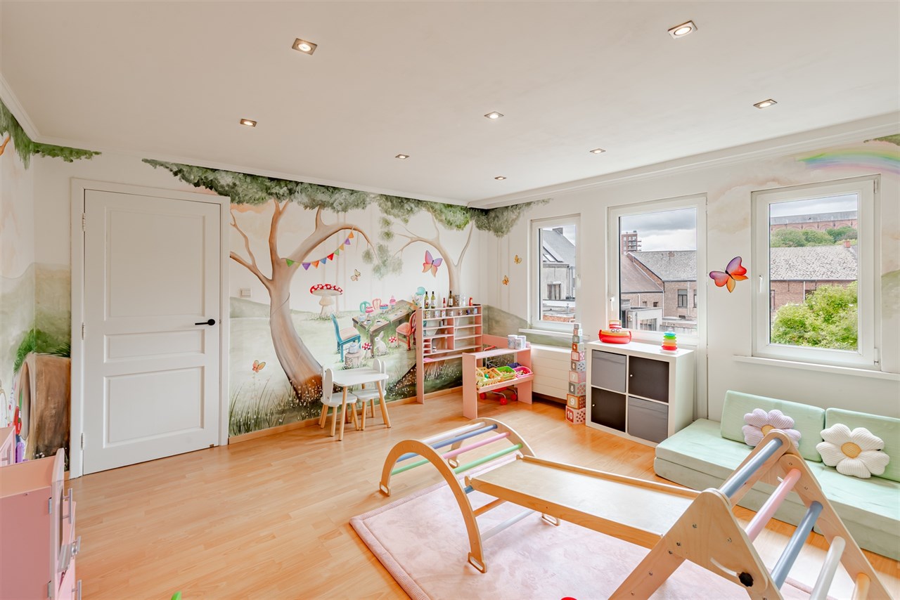 De indeling is als volgt: ruime inkomhal, lichtrijke leefruimte met aansluitend de volledig uitgeruste keuken, gevolgd door een berging/ wasplaats en eerste toilet. Een gezellige veranda verbindt tevens de leefruimte met de keuken. Op de eerste verdieping vinden we 2 zeer ruime slaapkamers en een badkamer die voorzien is van een dubbel meubel, tweede toilet en inloopdouche. Op de tweede verdieping vinden we een derde, ruime slaapkamer, tweede badkamer en een berging met ingemaakte kastenwand.