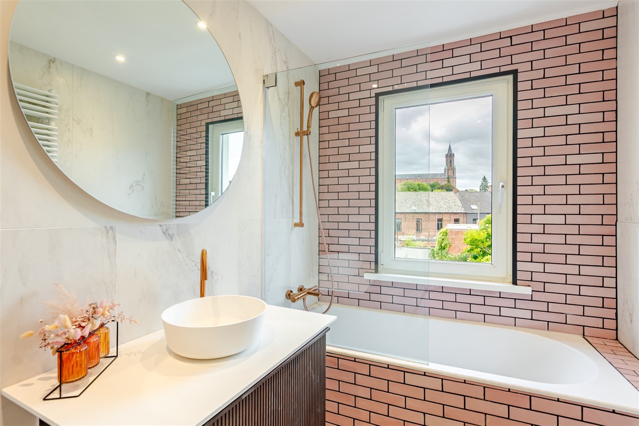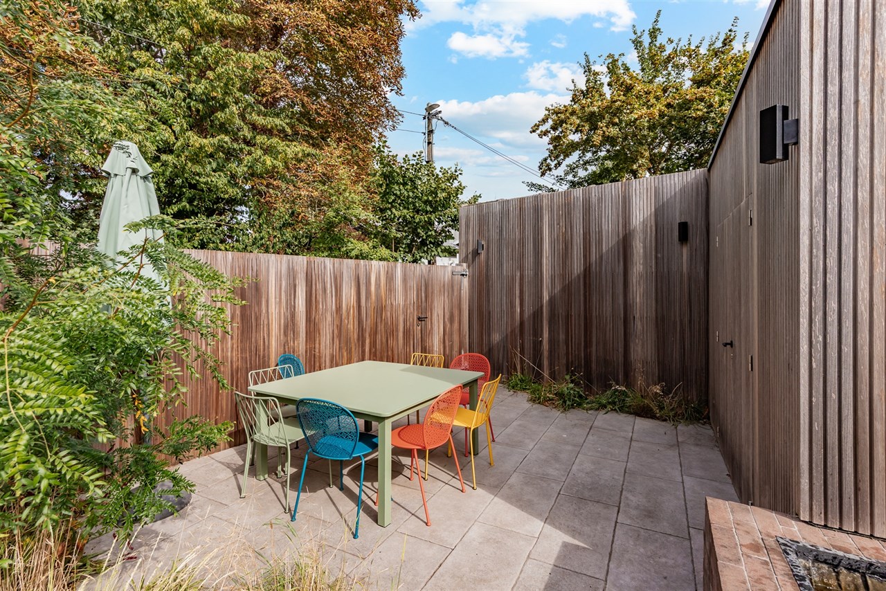 De woning beschikt achteraan over een uitweg zodat u niet met fietsen of afval door het huis hoeft.
