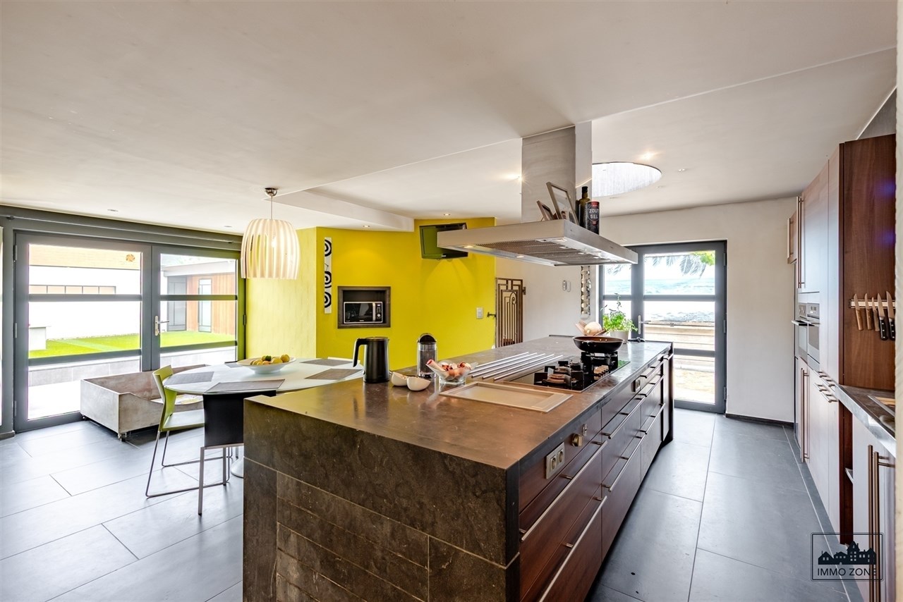 Lichtrijke woonkamer en volledig ingerichte keuken met kookeiland