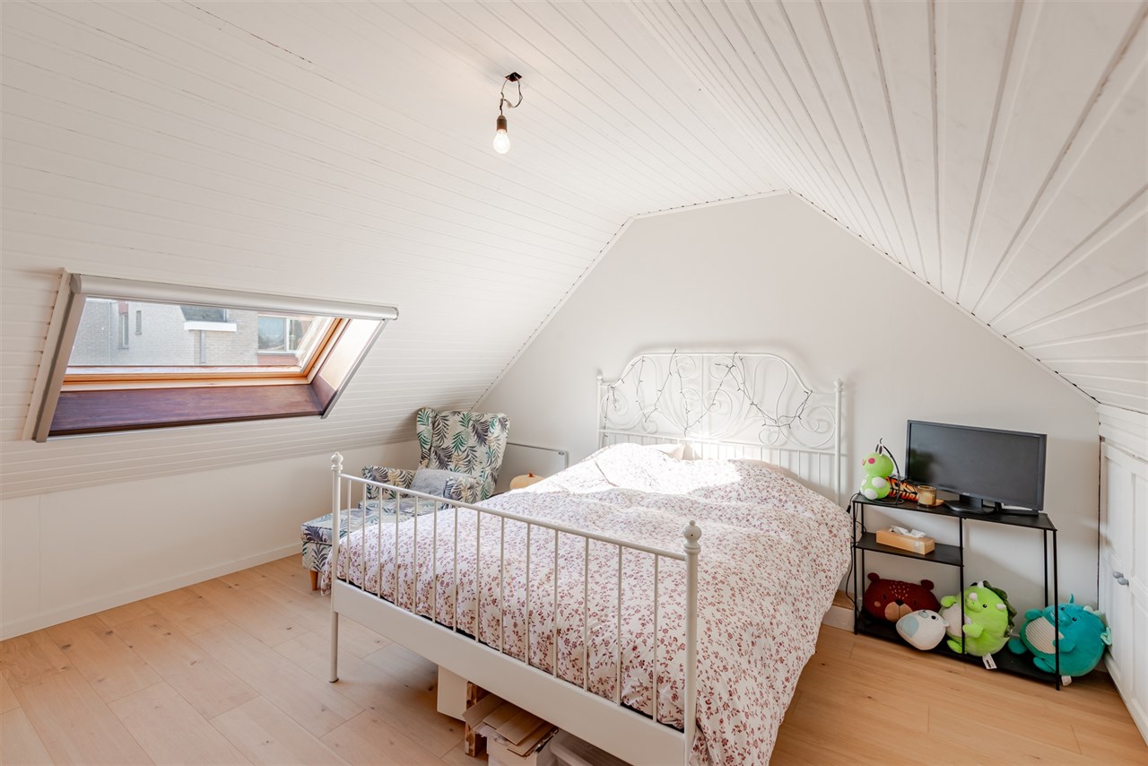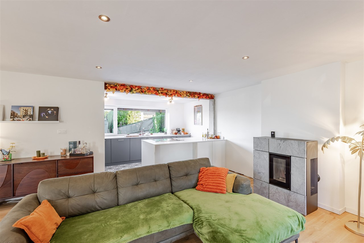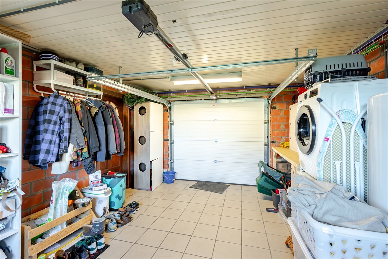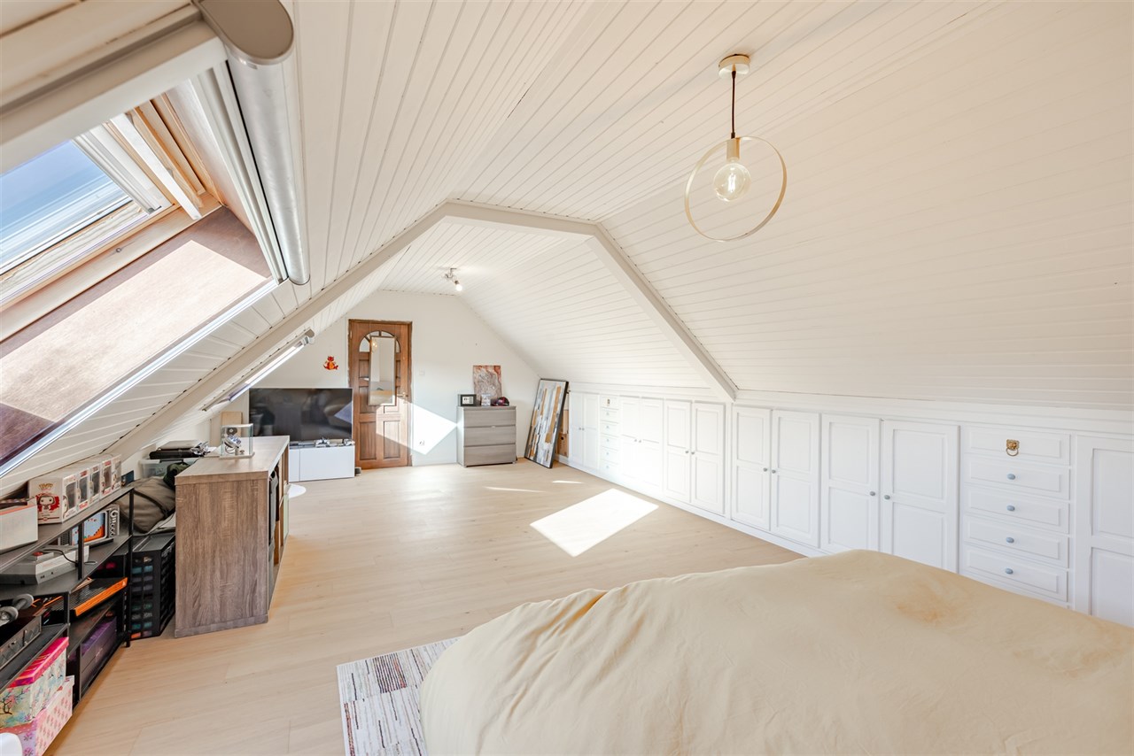 De indeling van de woning is als volgt: inkomhal die toegang biedt tot de grote lichtrijke leefruimte. Deze ruimte vormt samen met de open en volledig ingerichte keuken het hart van de woning, waarbij een echt thuisgevoel centraal staat. Tevens is er toegang tot de badkamer met lavabo, toilet en ligbad/douche. Op het gelijkvloers is er verder een inpandige garage met automatische poort aanwezig. Bovenliggend vinden we 2 grote kamers terug waarbij de masterbedroom met zijn 35m² een ware parel is.