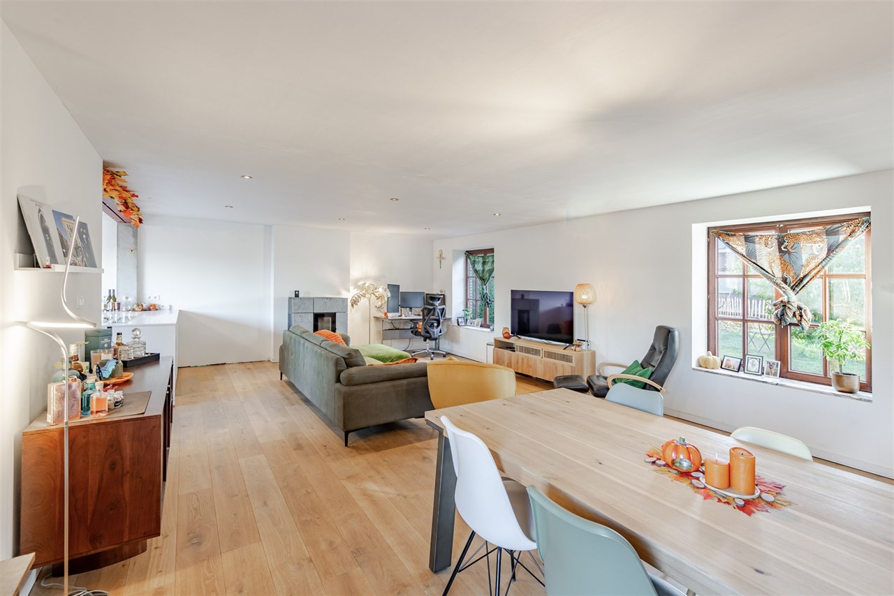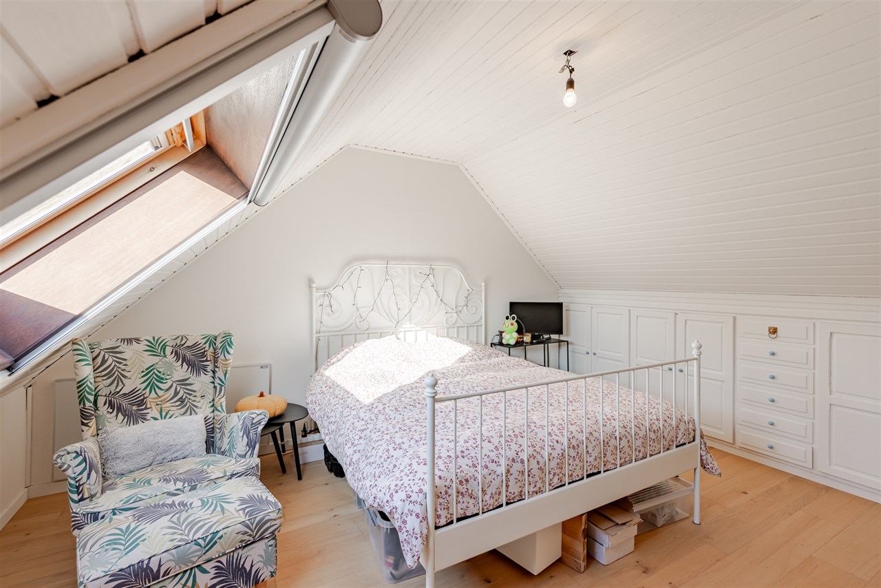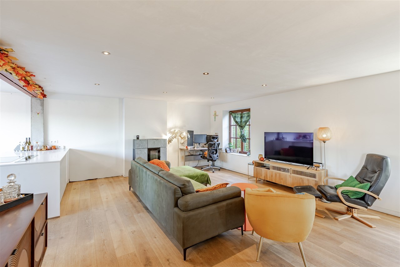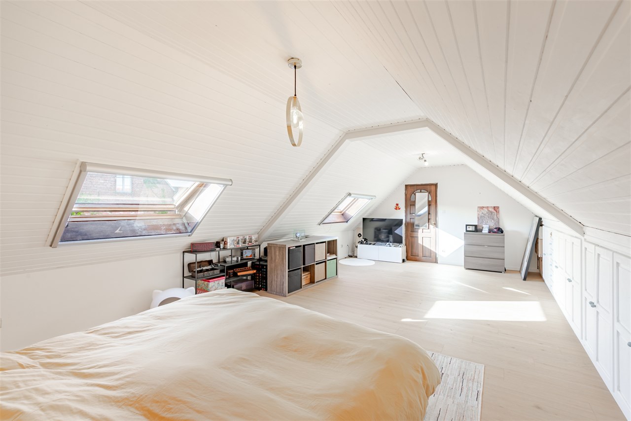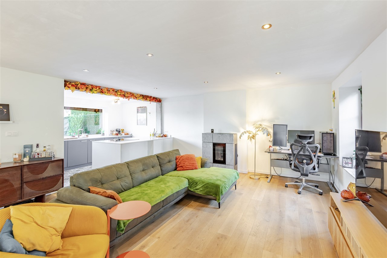 De indeling van de woning is als volgt: inkomhal die toegang biedt tot de grote lichtrijke leefruimte. Deze ruimte vormt samen met de open en volledig ingerichte keuken het hart van de woning, waarbij een echt thuisgevoel centraal staat. Tevens is er toegang tot de badkamer met lavabo, toilet en ligbad/douche. Op het gelijkvloers is er verder een inpandige garage met automatische poort aanwezig. Bovenliggend vinden we 2 grote kamers terug waarbij de masterbedroom met zijn 35m² een ware parel is.