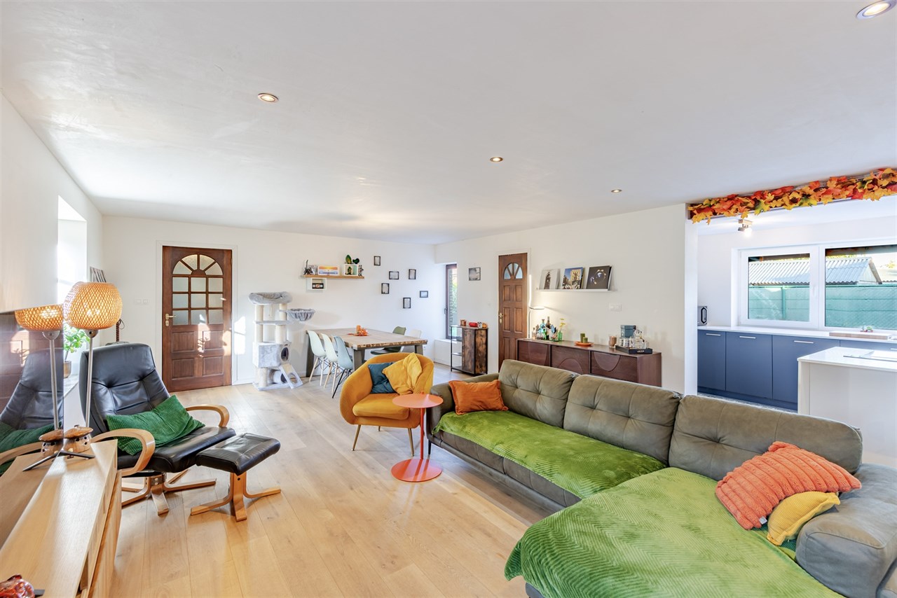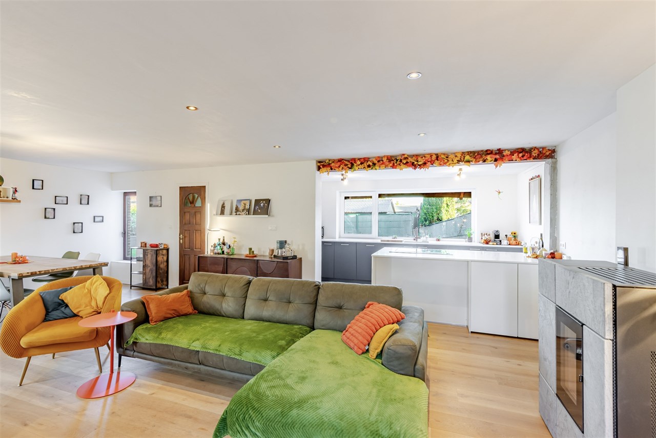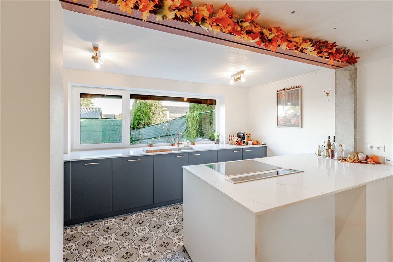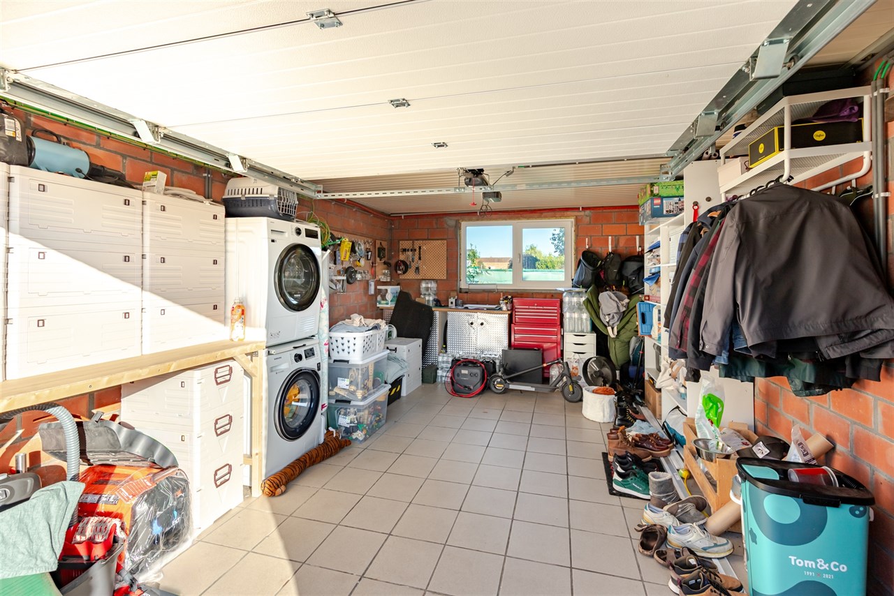 De indeling van de woning is als volgt: inkomhal die toegang biedt tot de grote lichtrijke leefruimte. Deze ruimte vormt samen met de open en volledig ingerichte keuken het hart van de woning, waarbij een echt thuisgevoel centraal staat. Tevens is er toegang tot de badkamer met lavabo, toilet en ligbad/douche. Op het gelijkvloers is er verder een inpandige garage met automatische poort aanwezig. Bovenliggend vinden we 2 grote kamers terug waarbij de masterbedroom met zijn 35m² een ware parel is.