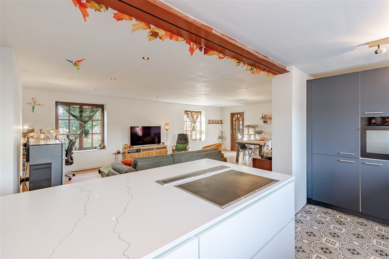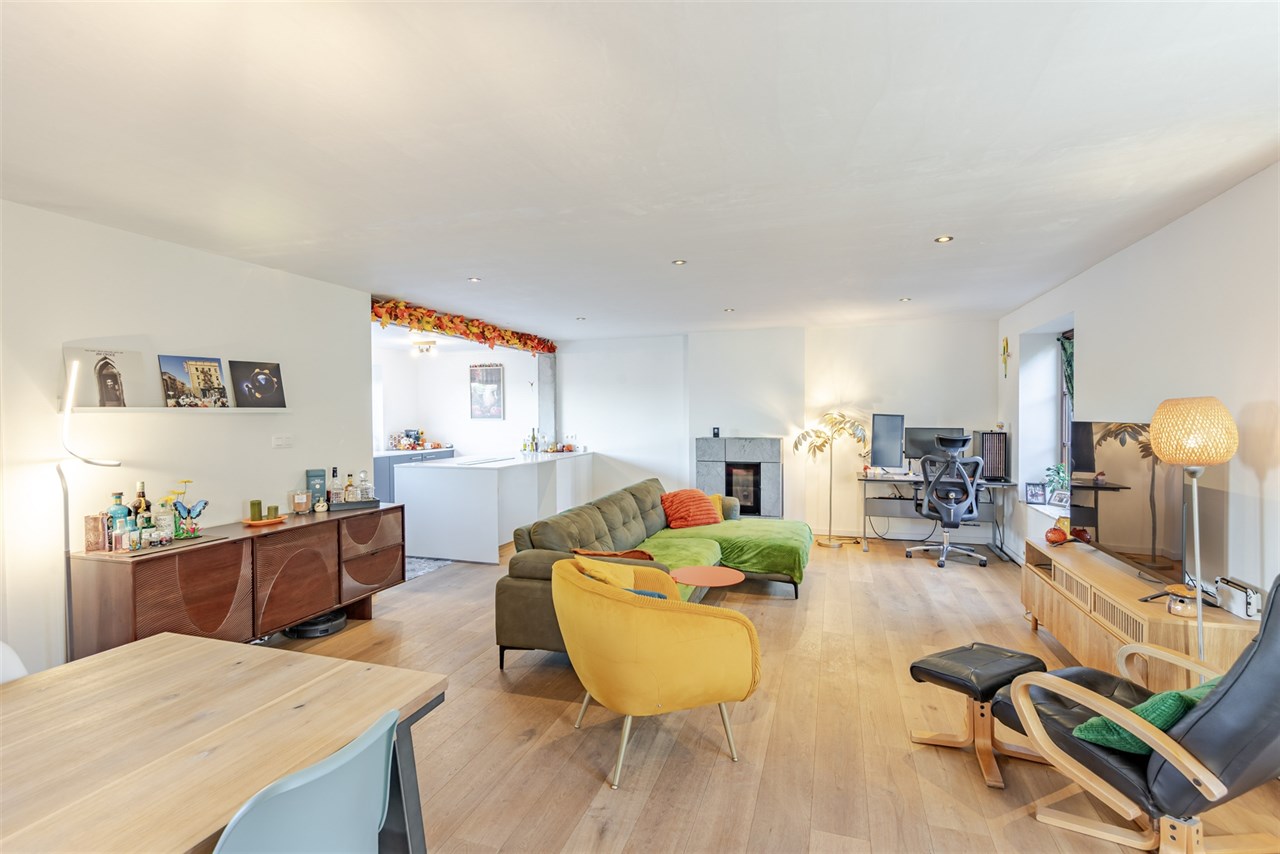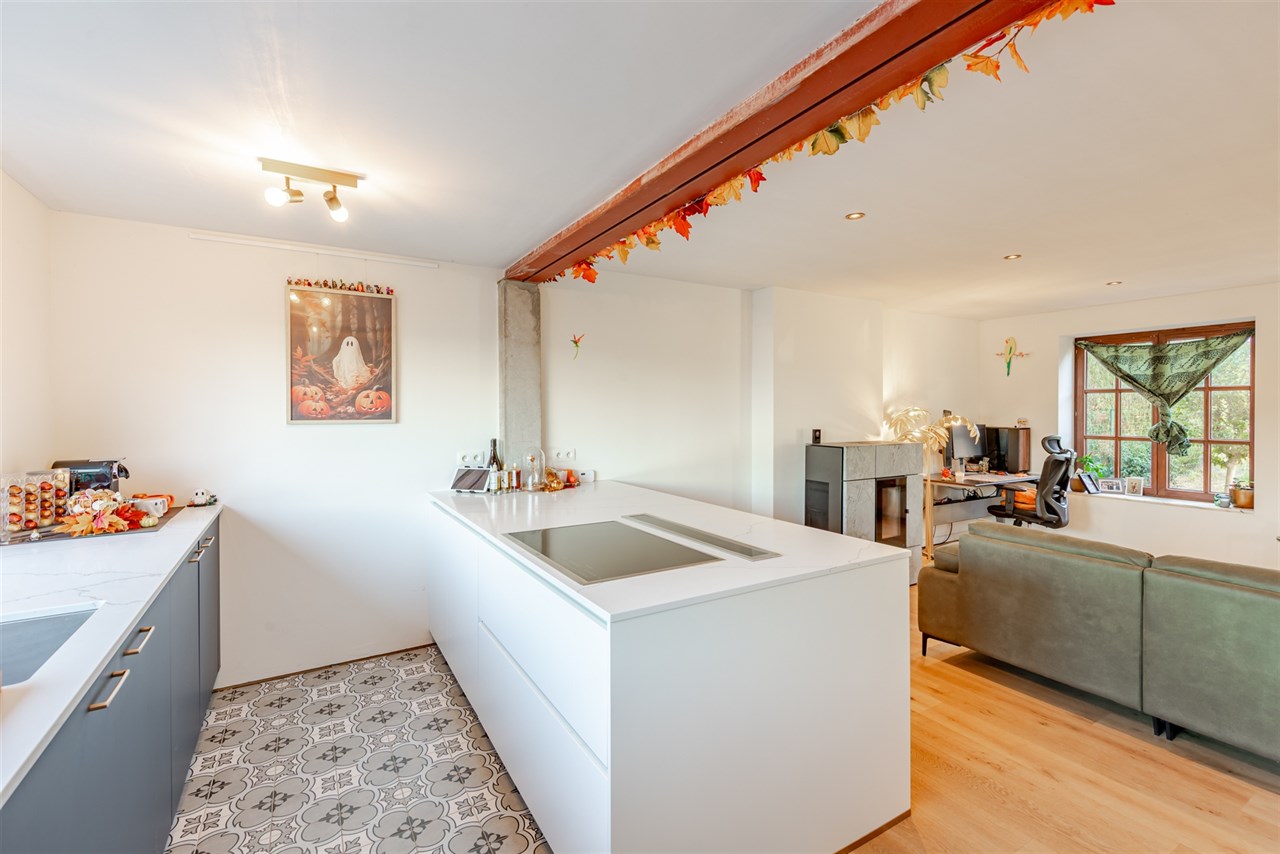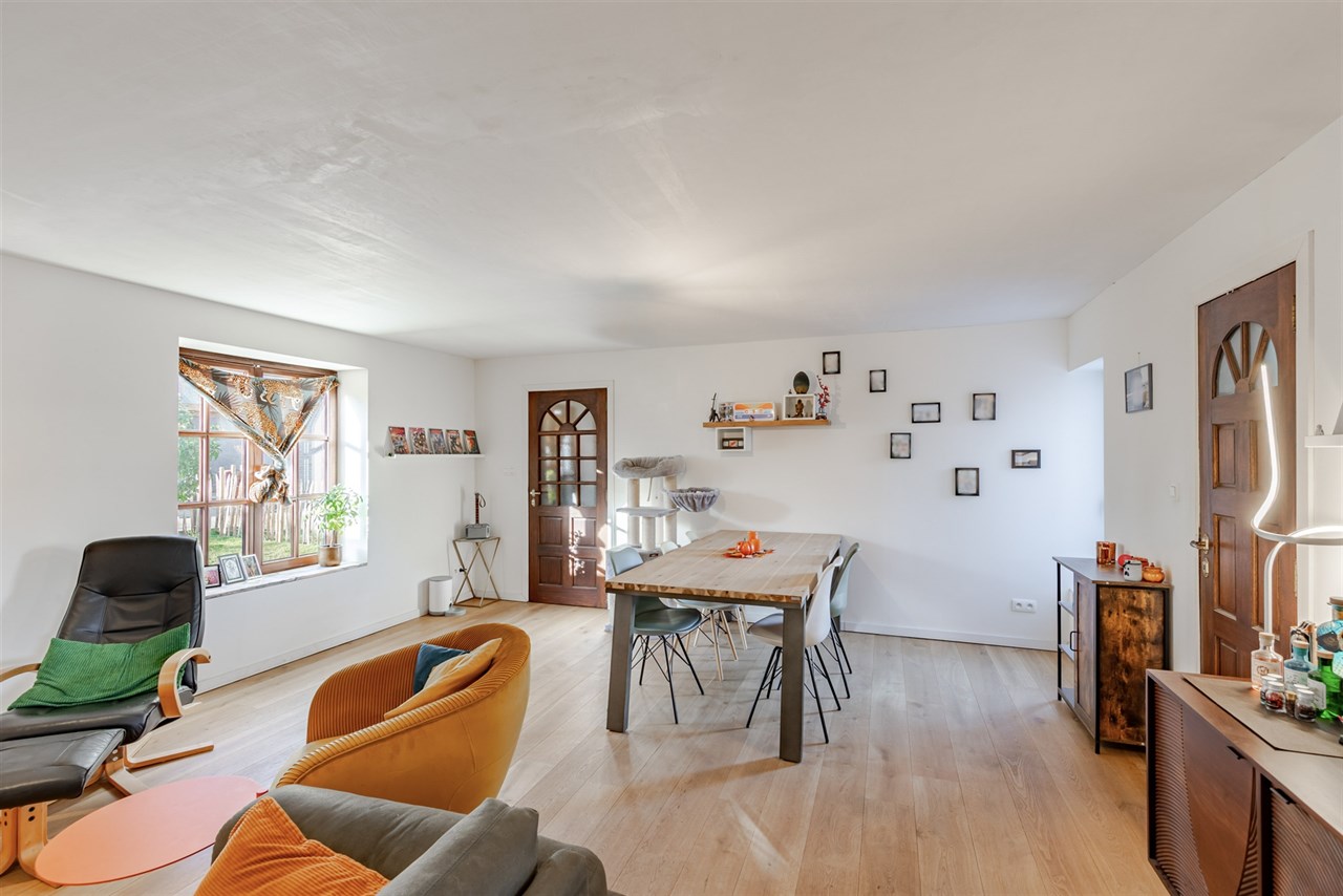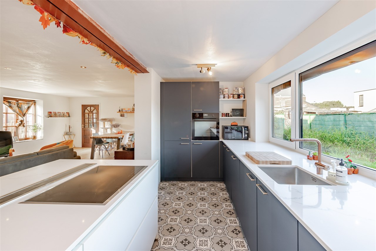 De indeling van de woning is als volgt: inkomhal die toegang biedt tot de grote lichtrijke leefruimte. Deze ruimte vormt samen met de open en volledig ingerichte keuken het hart van de woning, waarbij een echt thuisgevoel centraal staat. Tevens is er toegang tot de badkamer met lavabo, toilet en ligbad/douche. Op het gelijkvloers is er verder een inpandige garage met automatische poort aanwezig. Bovenliggend vinden we 2 grote kamers terug waarbij de masterbedroom met zijn 35m² een ware parel is.
