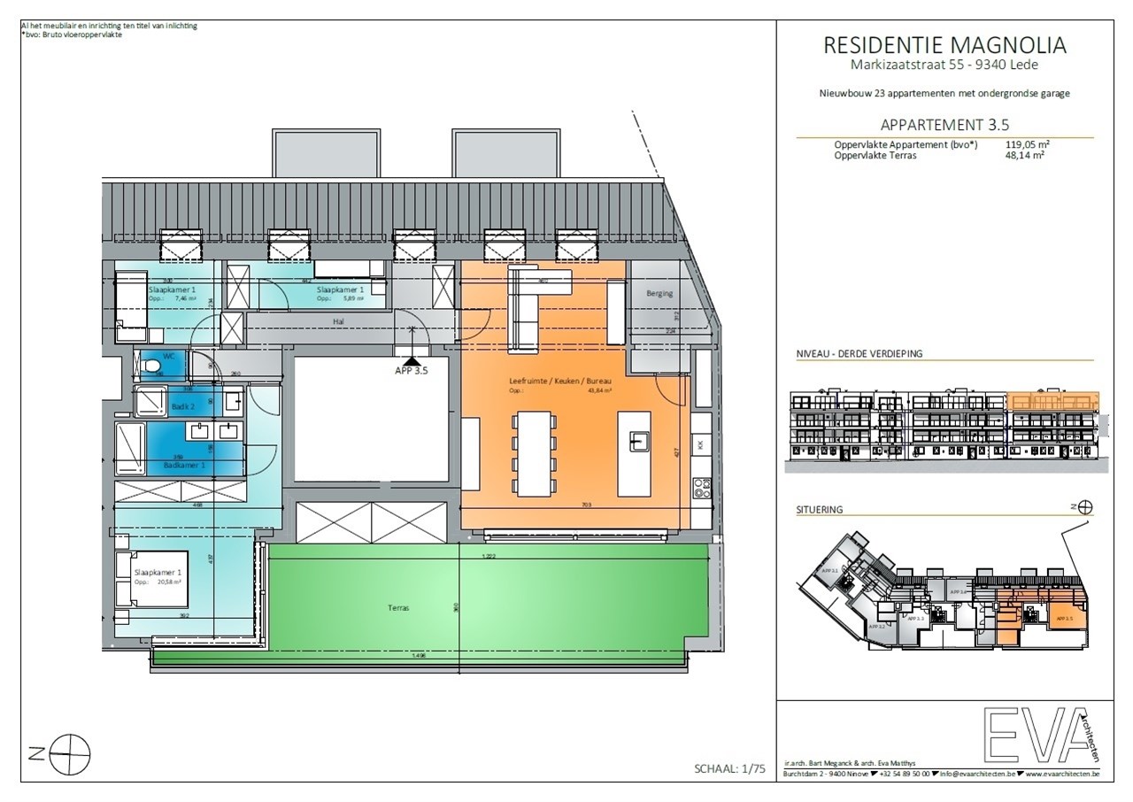 | 3.5 LEDE Markizaatstraat 55 | Appartement | 119.05m2 | 3 | 2 | - | 48.14m2 | In optie |