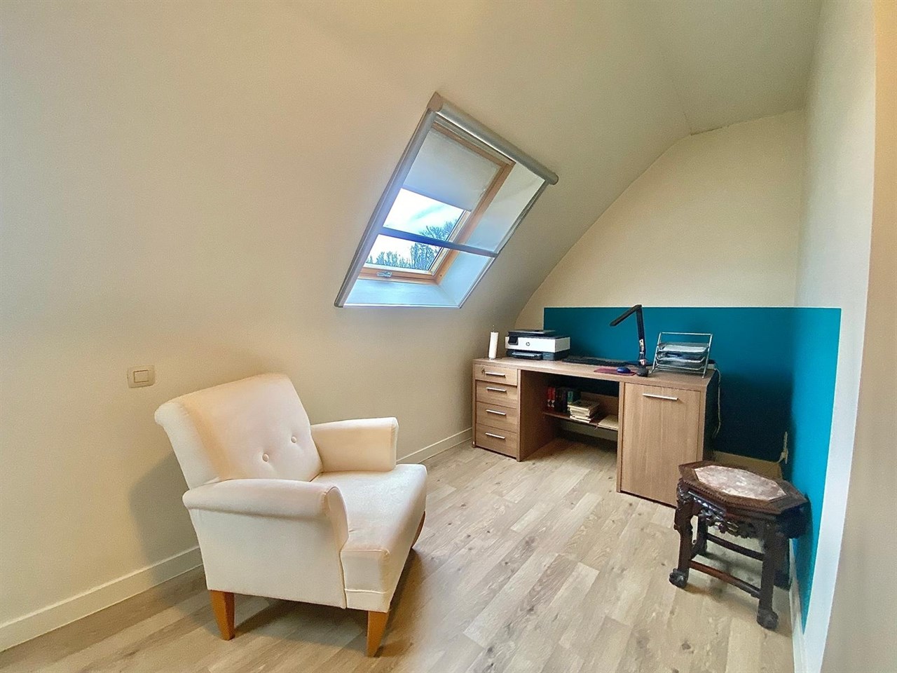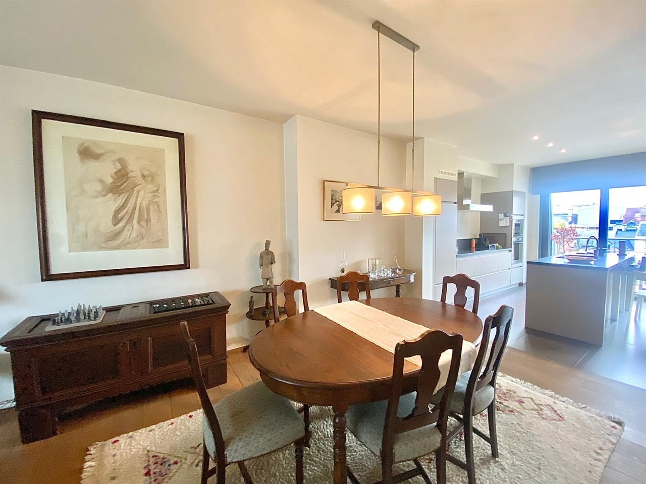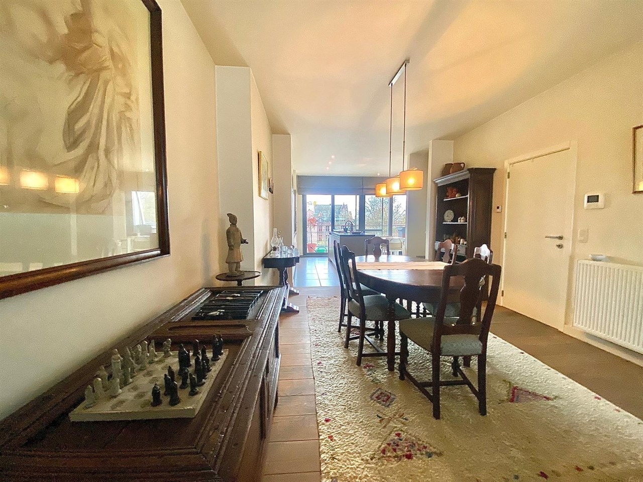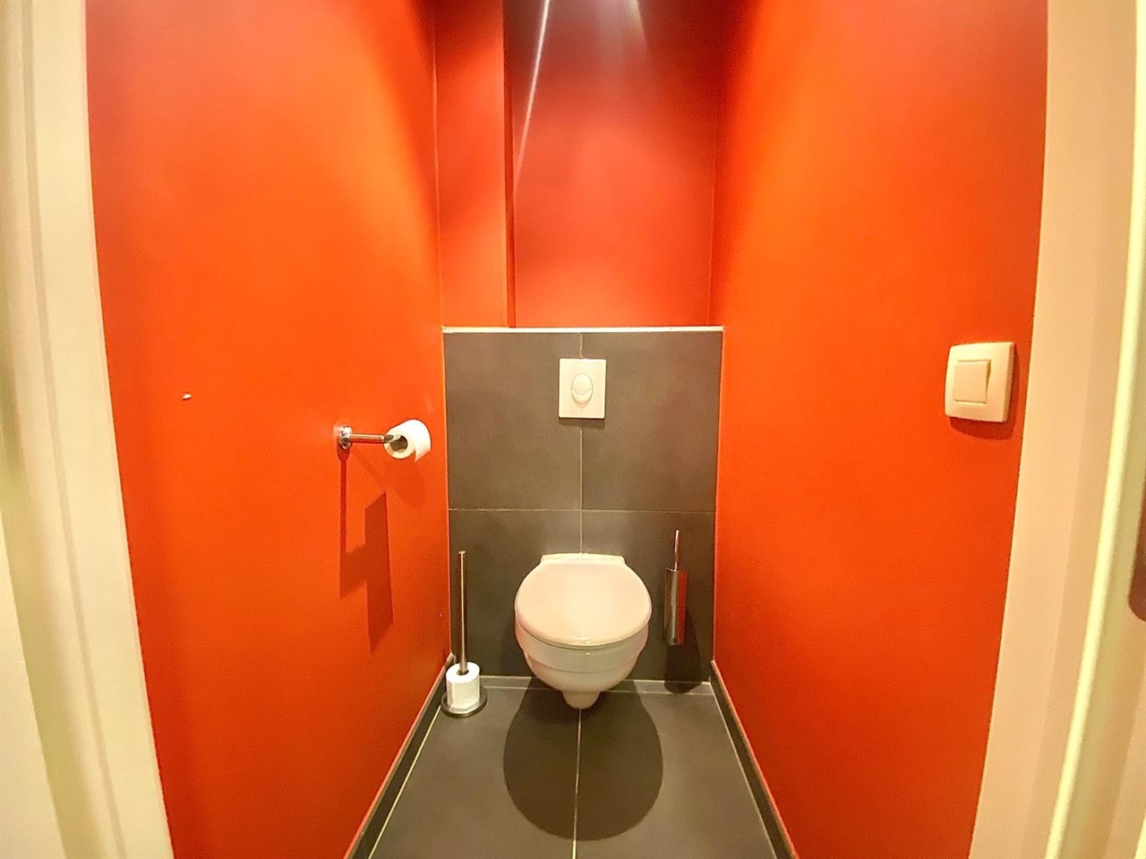 De inkomhal met vestiaire en gastentoilet vormt een stijlvolle ontvangst. De woonkamer straalt warmte en elegantie uit dankzij de sfeervolle haard, hoogwaardige materialen en het doordachte lichtplan. Via een groot schuifraam bereikt u het gezellige terras. Aansluitend bevindt zich de eetruimte met open keuken, volledig uitgerust met kwaliteitsvolle toestellen, duurzame materialen en veel opbergruimte. De keuken biedt plaats voor een ontbijttafel en geeft toegang tot een tweede ruim terras.