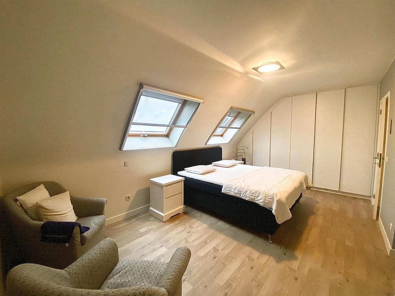 Op de verdieping wordt dezelfde verfijnde afwerking verdergezet. De ruime master bedroom beschikt over ingebouwde maatwerkkasten en directe toegang tot de badkamer met dubbele wastafel, bad en inloopdouche. De badkamer is ook toegankelijk via de nachthal. Daarnaast is er een tweede ruime slaapkamer en een extra afzonderlijk toilet. Alle Velux-ramen zijn voorzien van zonnescreens en vliegenramen. Ruime berging aanwezig. De gemeenschappelijke kosten bedragen 60 euro per maand.