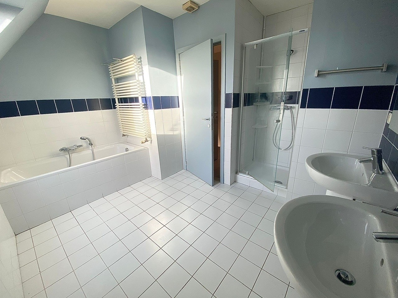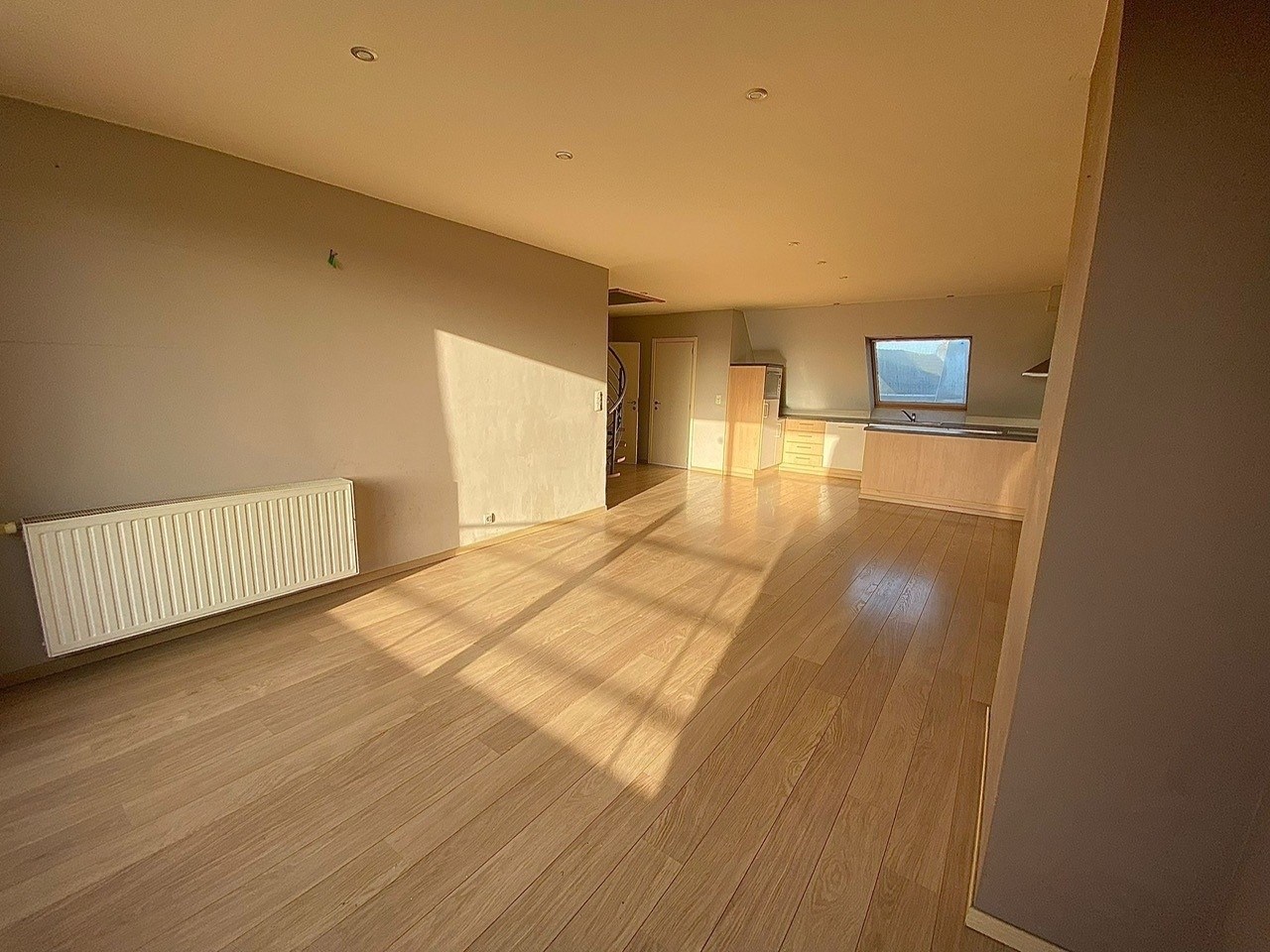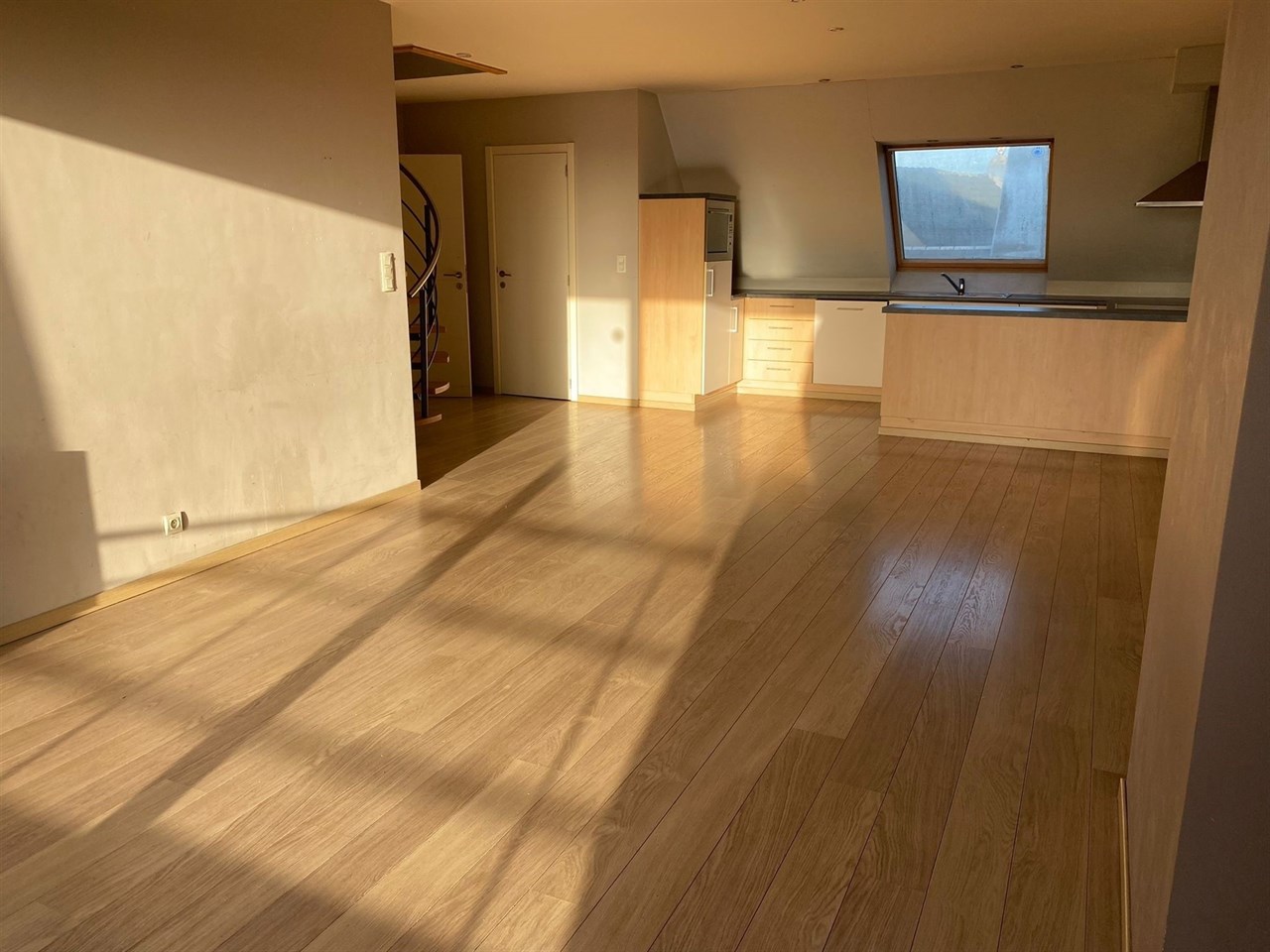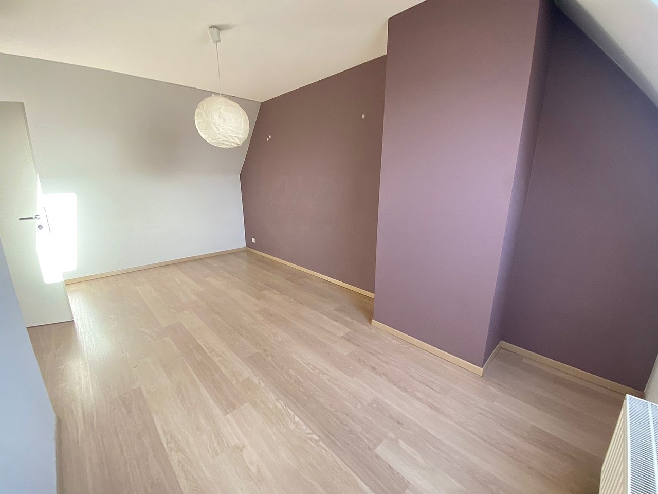 Het appartement bevindt zich in een duplexindeling en verwelkomt u via de inkomhal, die toegang biedt tot de verschillende ruimtes van het appartement. De lichtrijke leefruimte vormt het centrale punt van de woning en sluit naadloos aan op de open keuken, die is uitgerust met een kookeiland en voldoende werk- en opbergruimte. Dankzij het grote schuifraam geniet de leefruimte van veel natuurlijke lichtinval en heeft men rechtstreeks toegang tot het ruime terras, waar het aangenaam vertoeven is.