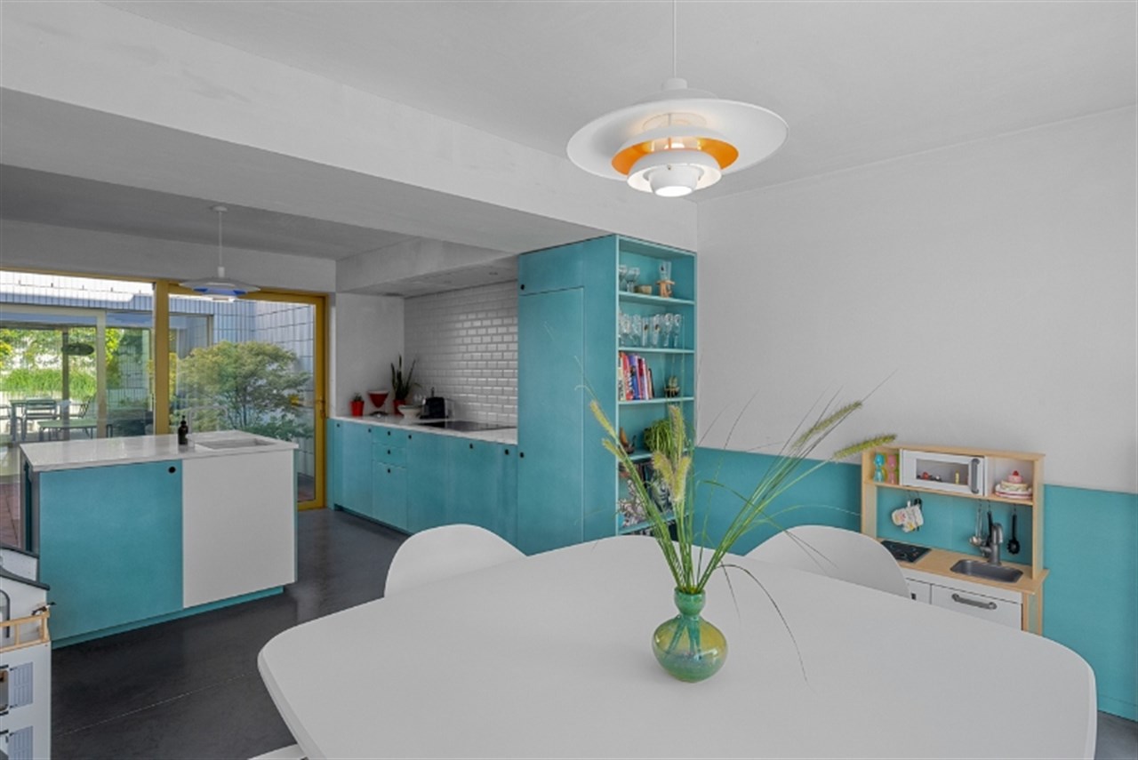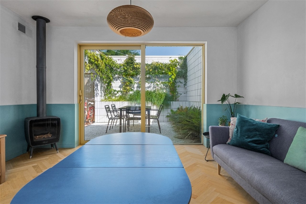 De woning is voorzien van hedendaags comfort, waaronder een ventilatiesysteem D, conforme elektriciteit, aluminium ramen met isolerende beglazing, automatische rolluiken aan de voorzijde en verwarming op aardgas via een warmeluchtsysteem. Het EPC bedraagt 181 kWh/m². De ligging vormt een absolute troef: gelegen in een autovrij en kindvriendelijk straatje met een speelplein naast de deur, en tegelijk met een vlotte bereikbaarheid van openbaar vervoer, winkels en scholen. De woning is beschikbaar vanaf 1 augustus 2026.