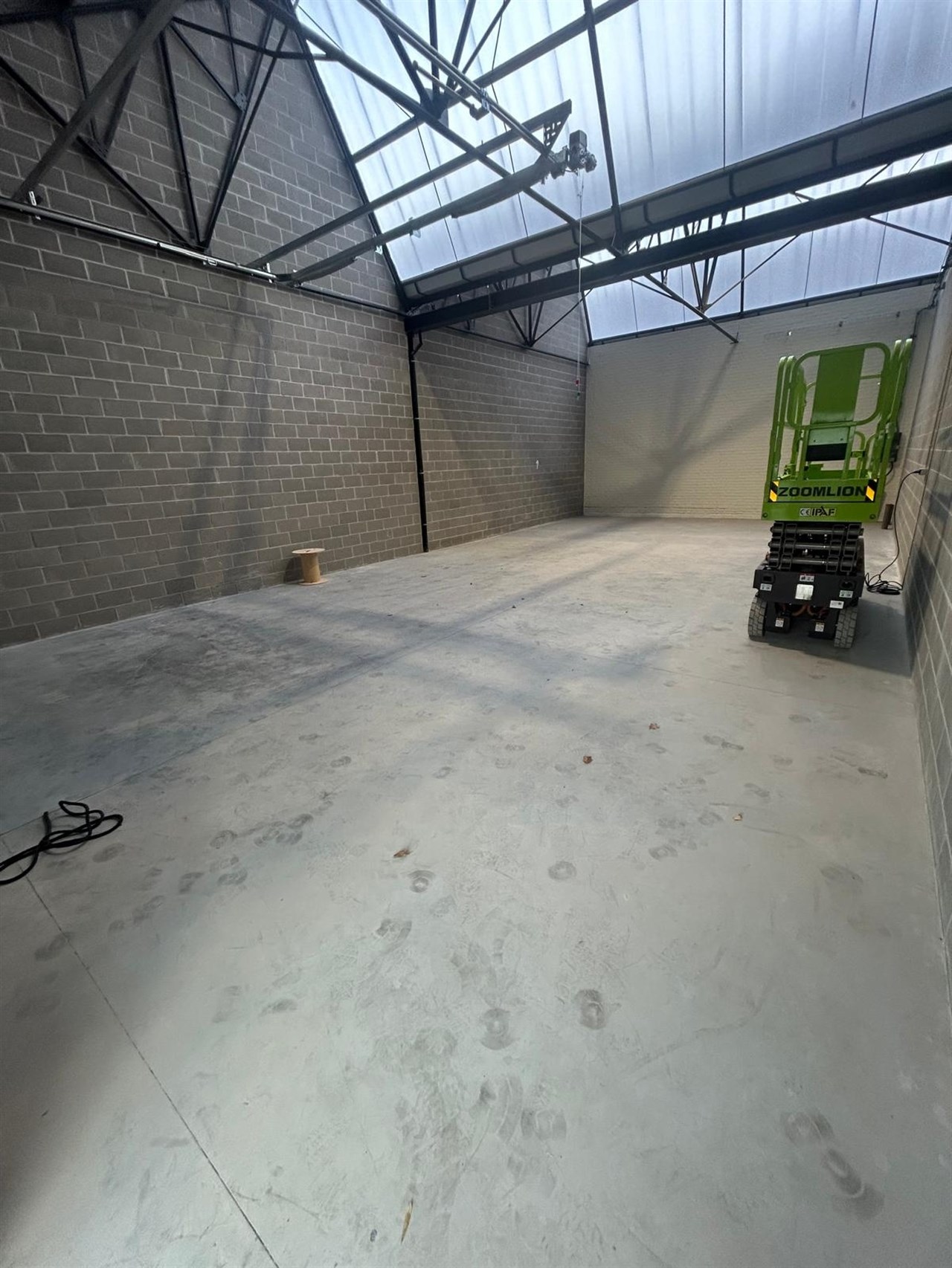 Loods van ca. 124m² te huur op strategische ligging nabij de E17, ideaal voor opslagdoeleinden.