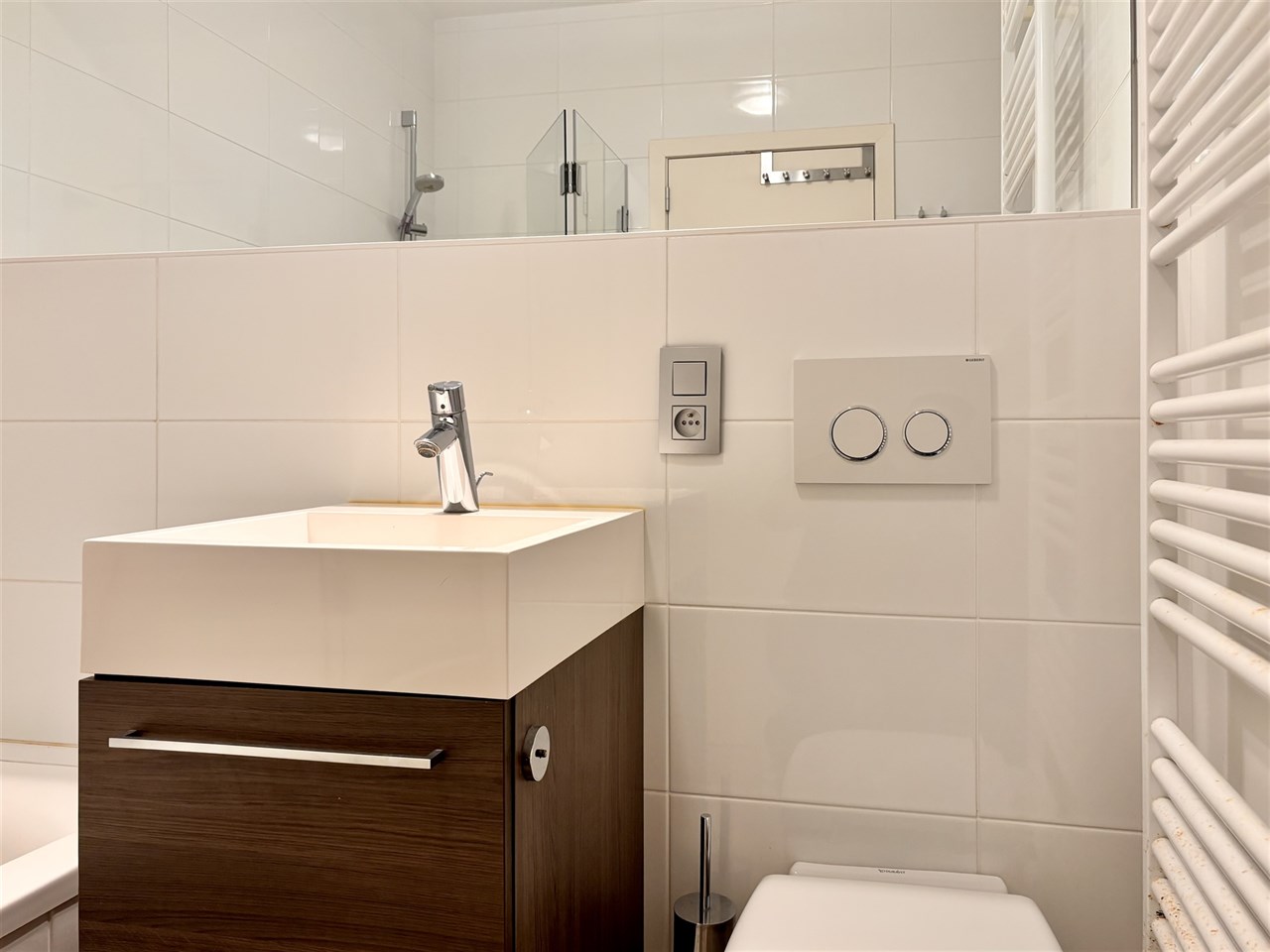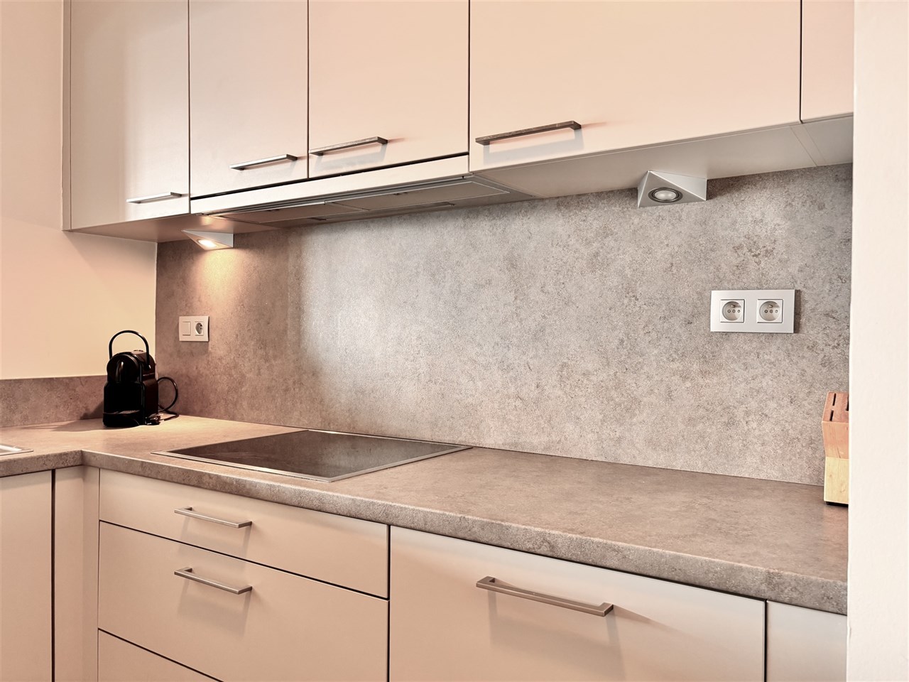 De volledig uitgeruste keuken biedt alle comfort voor dagelijks gebruik. De ruime en bijzonder lichtrijke leefruimte geniet van een aangenaam zijdelings zeezicht, wat zorgt voor een open en ontspannen woongevoel.