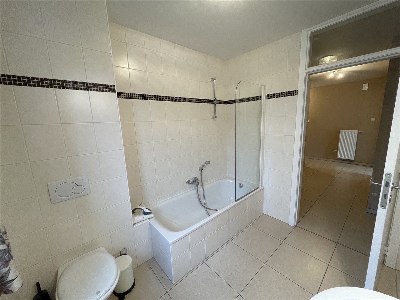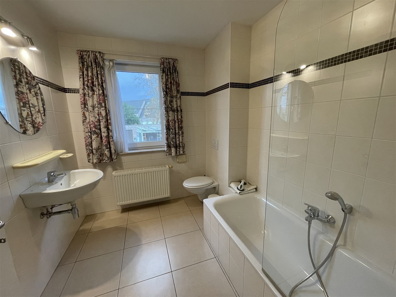 2 ruime slaapkamers (elk 14,5 m²), ingerichte badkamer met toilet, ligbad en lavabo.