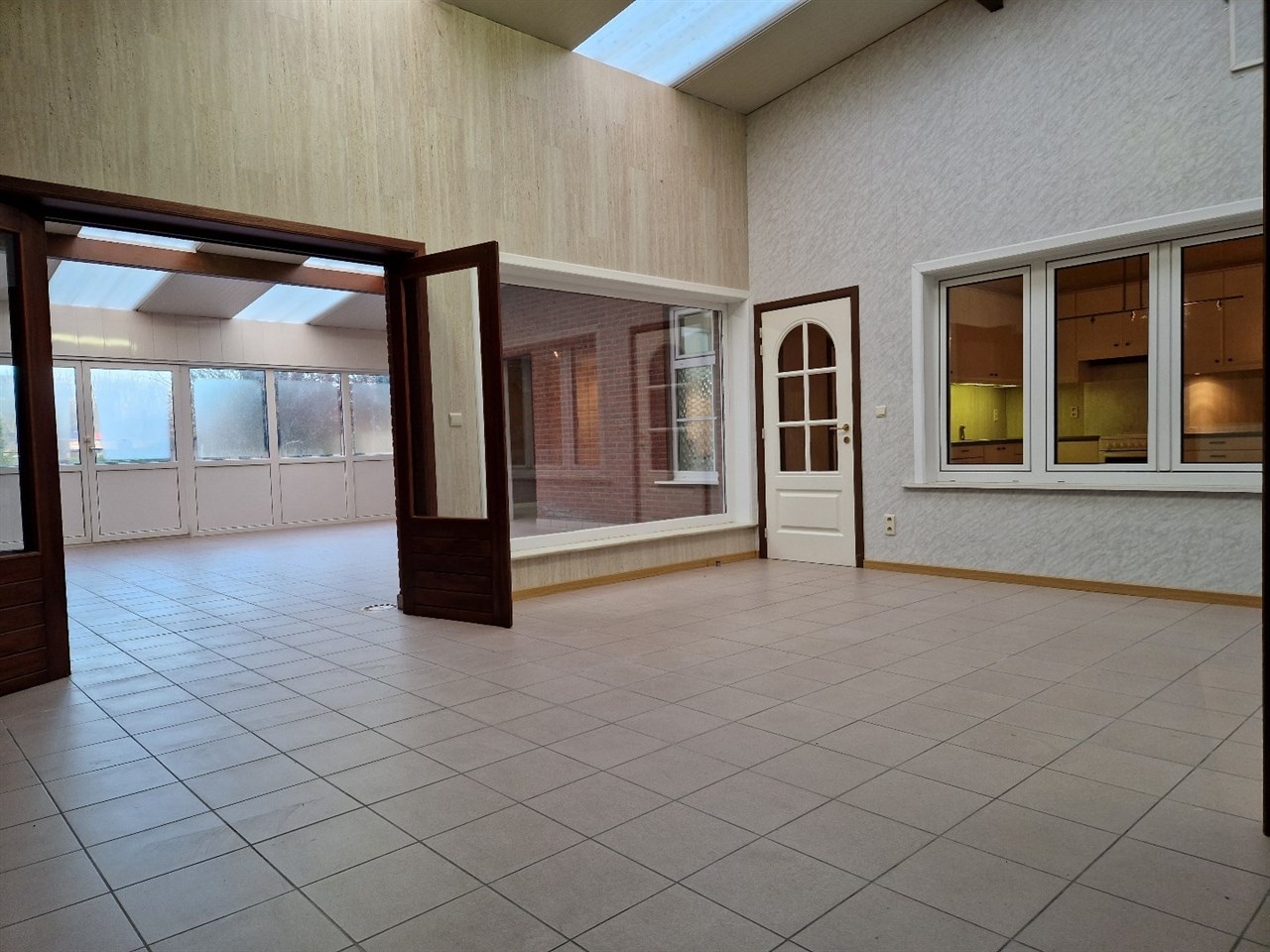 Deze verrassend ruime woning beschikt over een lichtrijke leefruimte (38m²) met aanpalend een ruime leefkeuken (26m²) met hiernaast gelegen de verrassende dubbele veranda (65m²!),