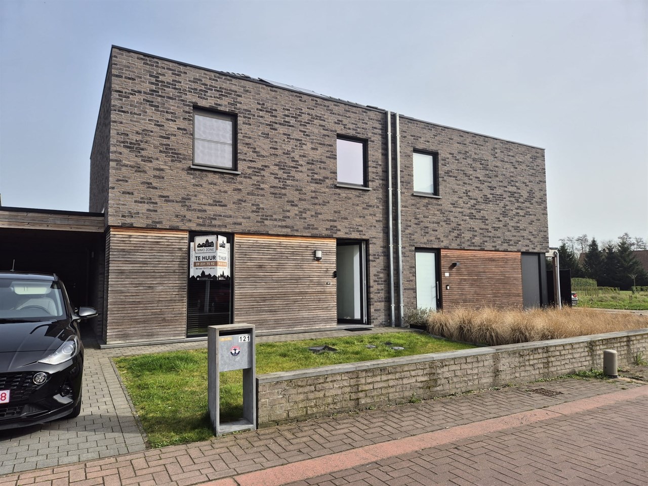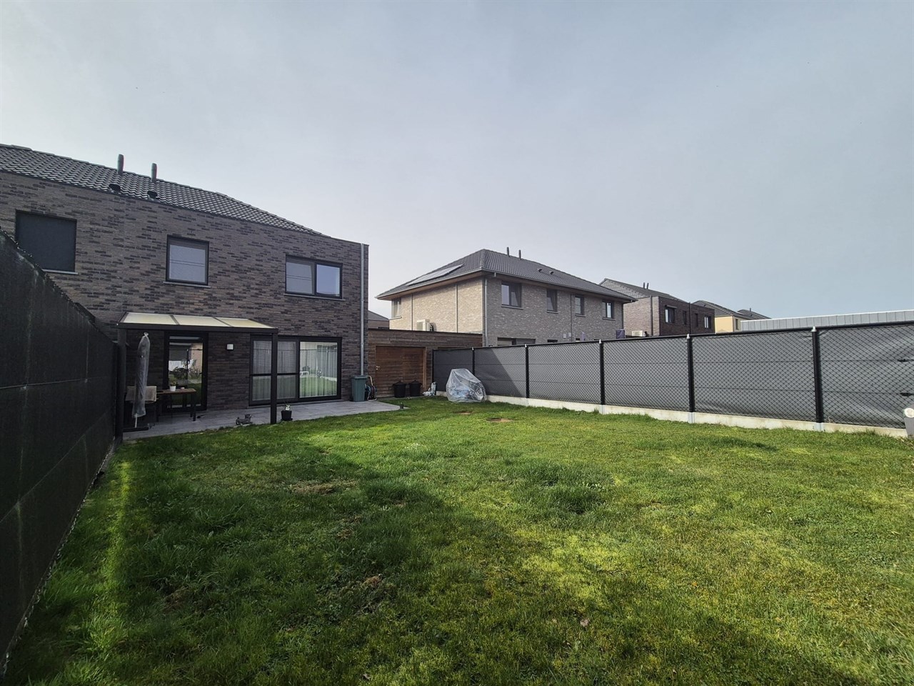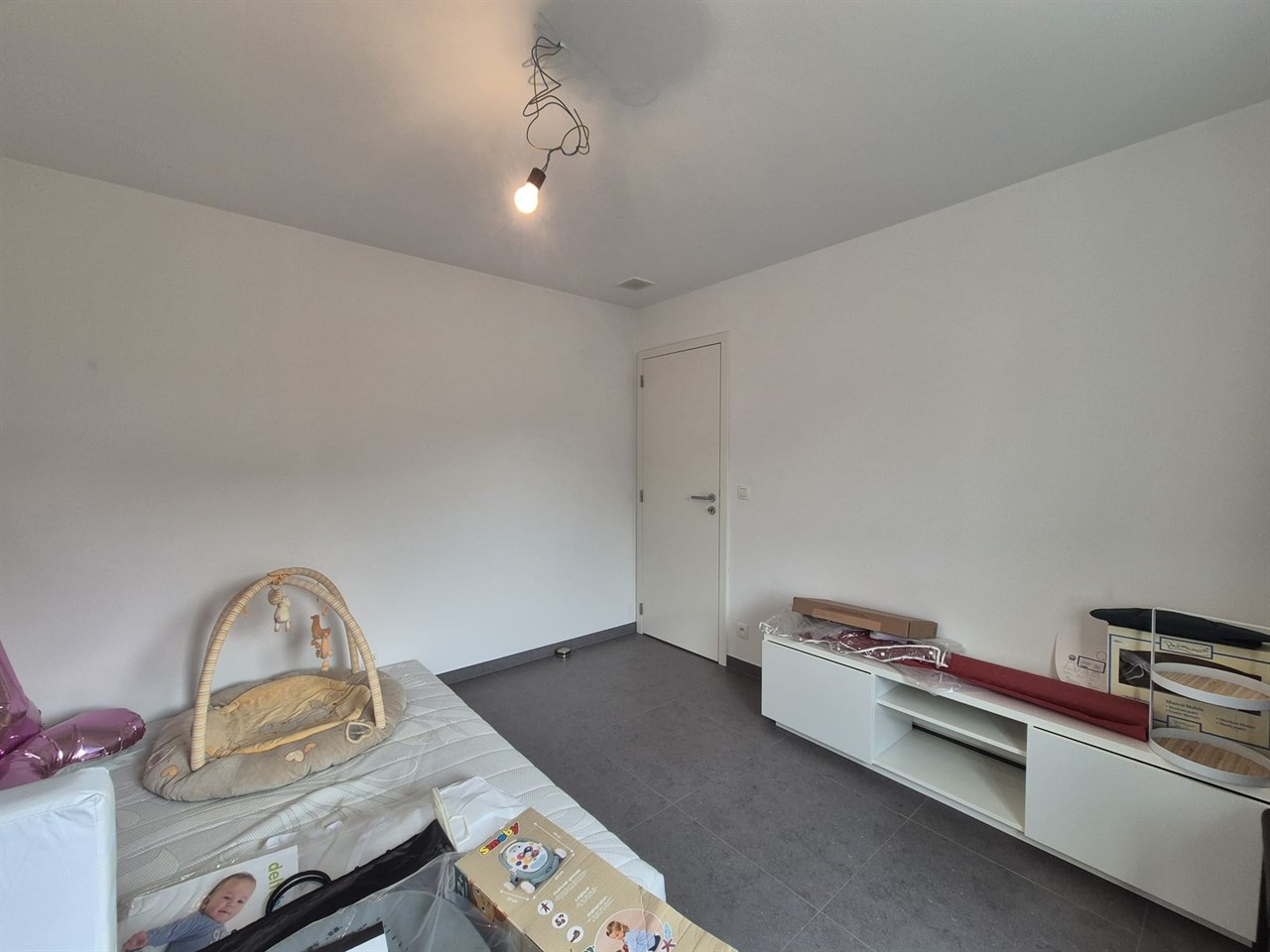 Inkomhal, hangtoilet met lavabo, aangename ruime lichtrijke living met open ingerichte keuken uitgerust met ceramische kookplaat, dampkap, microgolf, warme luchtoven, vaatwasser en frigo.