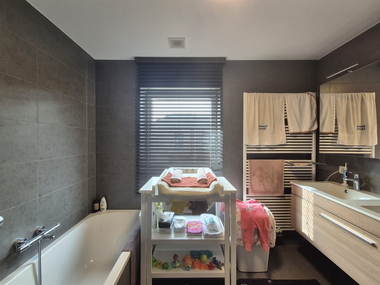 1e verdiep: 3 ruime slaapkamers afgewerkt met laminaatparket en ingerichte badkamer voorzien van ligbad, inloopdouche, dubbele lavabo met meubel en toilet.