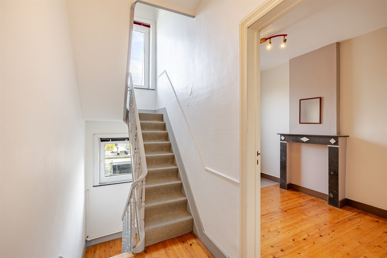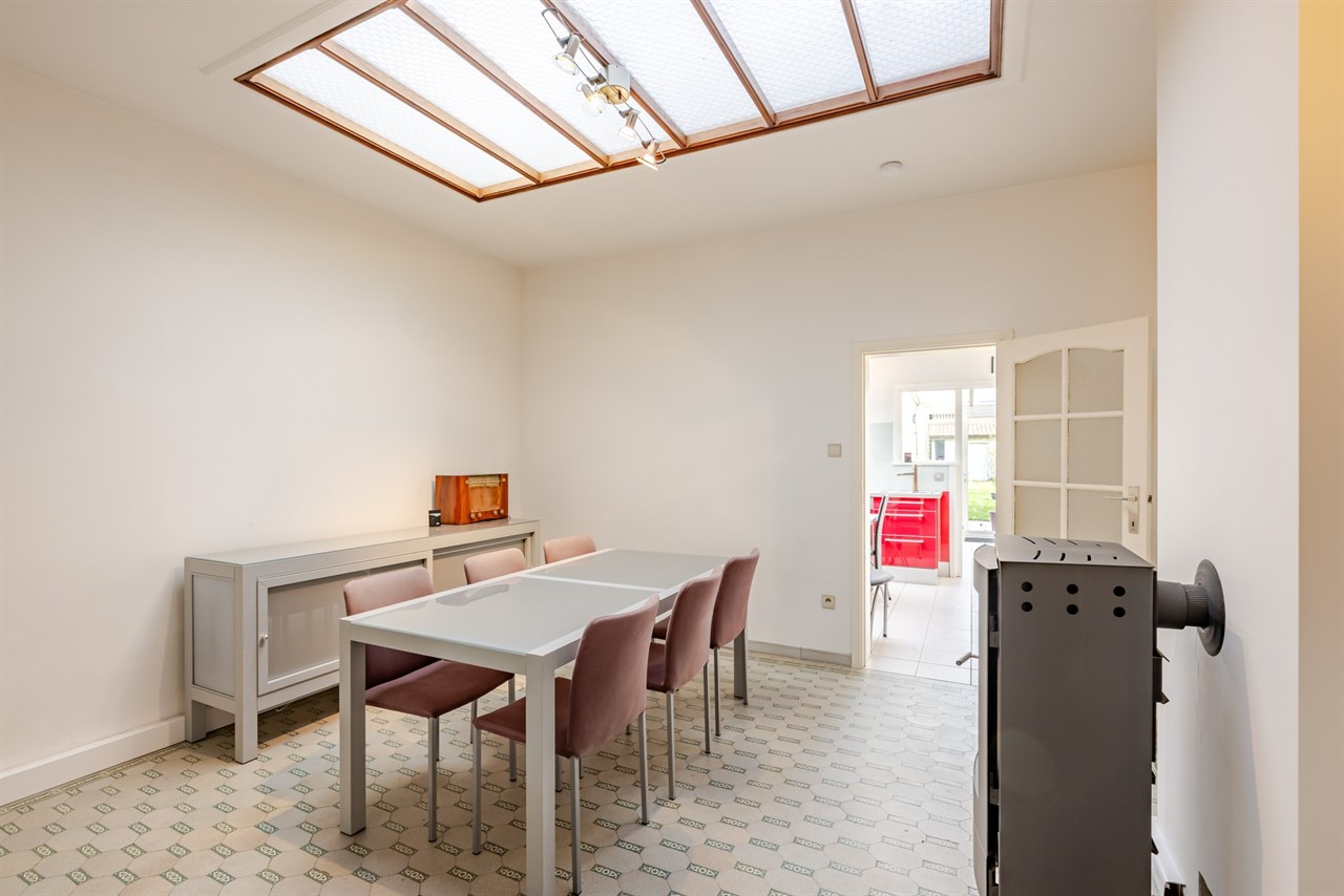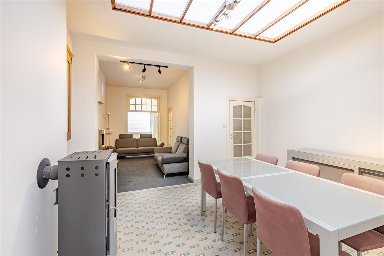 Deze ruime stadswoning is ideaal gelegen op wandelafstand van het centrum en het stadspark van Aalst en biedt tal van mogelijkheden voor wie op zoek is naar comfortabel wonen op een centrale locatie. Op het gelijkvloers bevindt zich een voorplaats die perfect kan ingericht worden als bureau of extra polyvalente ruimte, ideaal voor wie wonen en werken wil combineren. Verder vindt u er een aangename leefruimte met eetplaats, een ingerichte keuken met aansluitend een lichtrijke veranda en een badkamer uitgerust met ligbad en lavabomeubel, evenals een apart toilet.