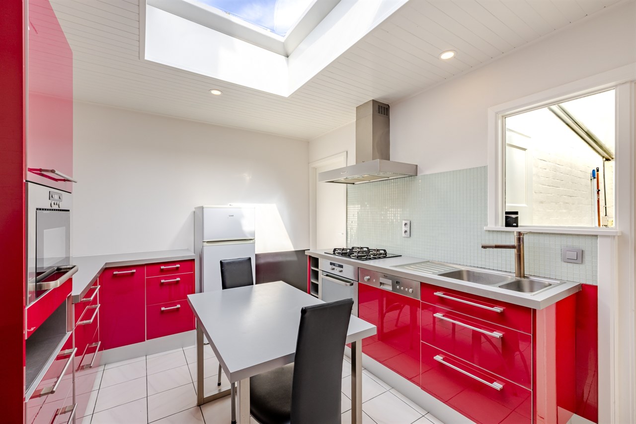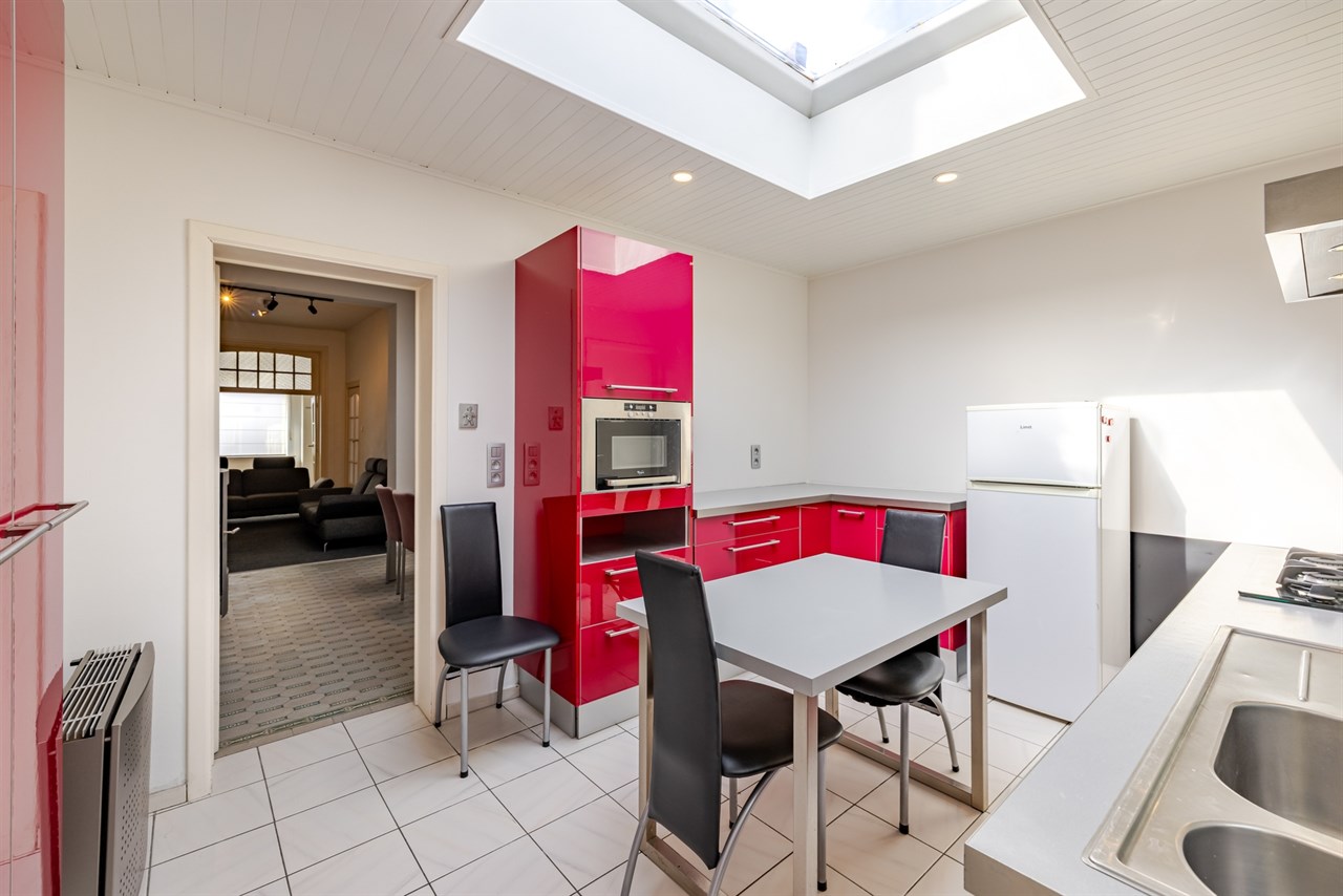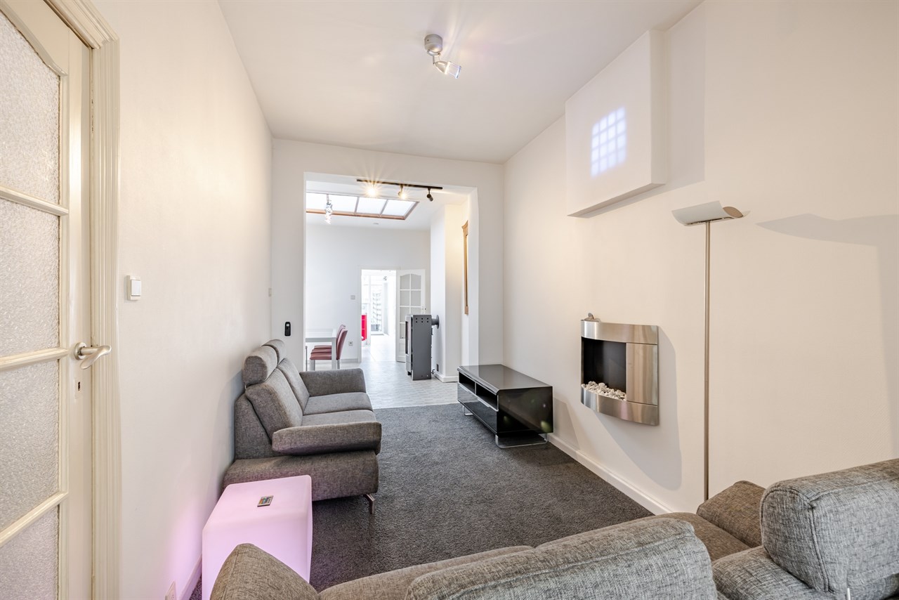 Deze ruime stadswoning is ideaal gelegen op wandelafstand van het centrum en het stadspark van Aalst en biedt tal van mogelijkheden voor wie op zoek is naar comfortabel wonen op een centrale locatie. Op het gelijkvloers bevindt zich een voorplaats die perfect kan ingericht worden als bureau of extra polyvalente ruimte, ideaal voor wie wonen en werken wil combineren. Verder vindt u er een aangename leefruimte met eetplaats, een ingerichte keuken met aansluitend een lichtrijke veranda en een badkamer uitgerust met ligbad en lavabomeubel, evenals een apart toilet.