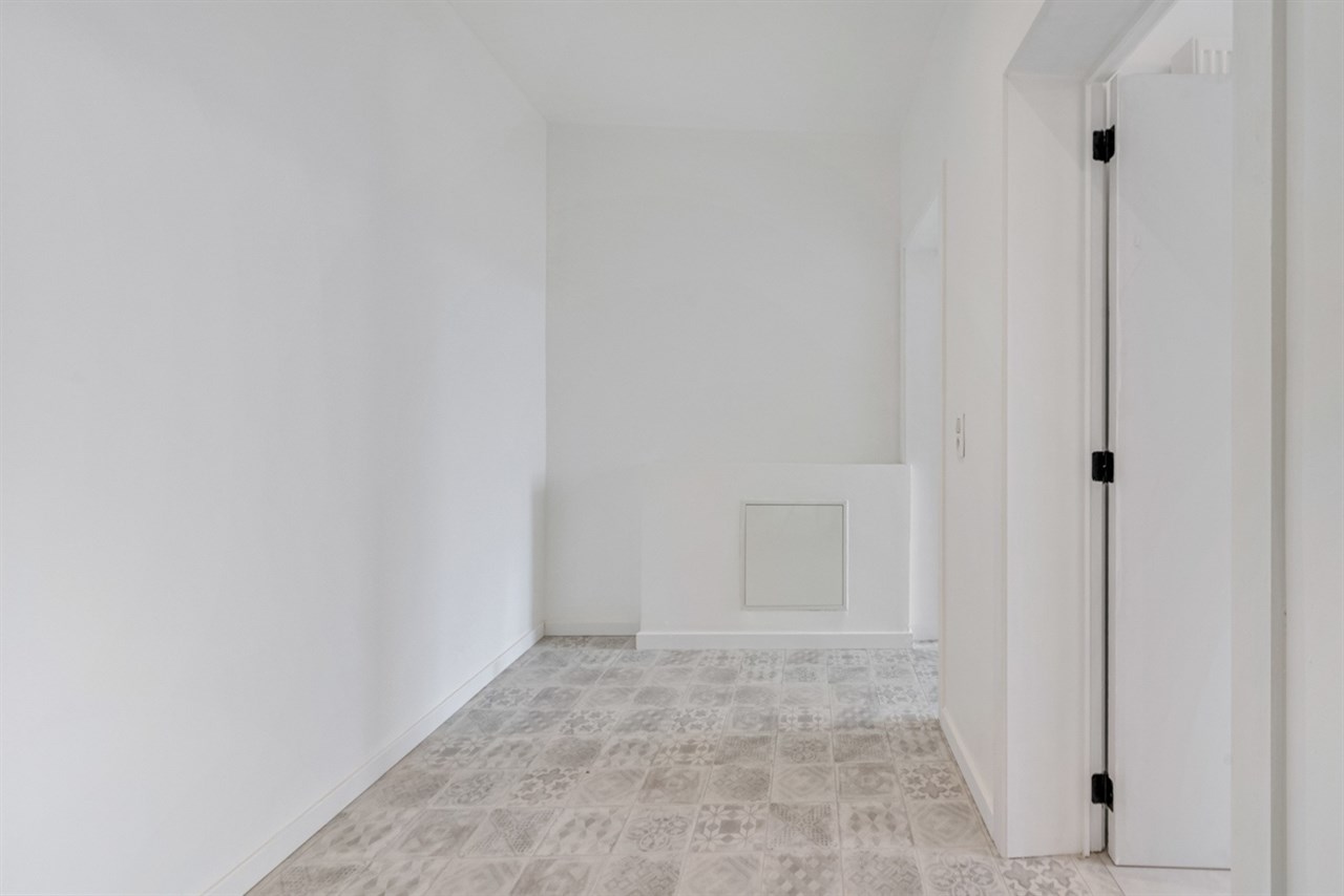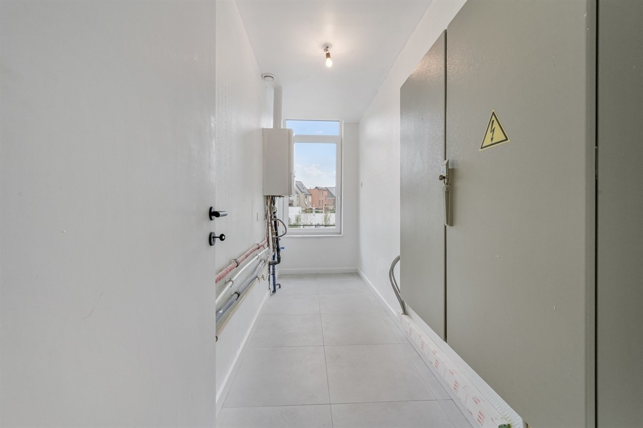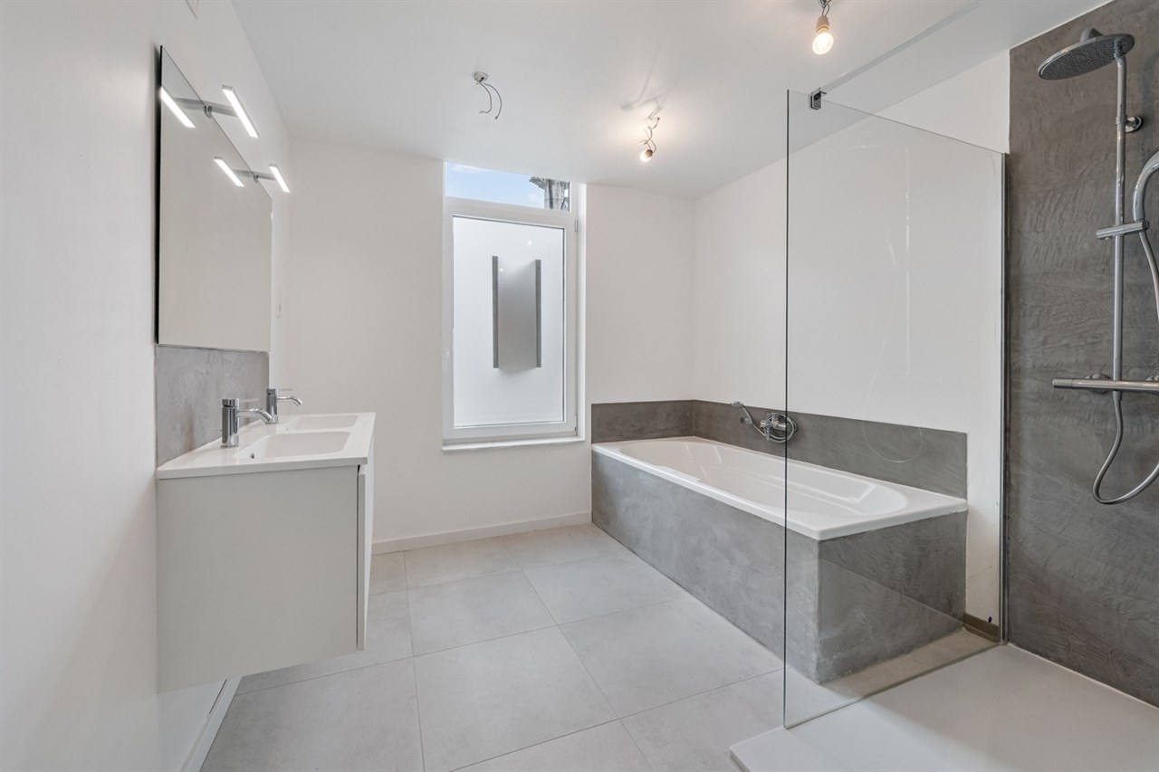 Een aparte inkomhal biedt toegang tot de overige ruimtes. Er is een apart gastentoilet en een ruime berging die voldoende opbergruimte voorziet. De twee volwaardige slaapkamers zijn praktisch ingedeeld en genieten eveneens van veel licht. De moderne badkamer is een echt pareltje, met een combinatie van een ligbad en een inloopdouche, afgewerkt met een dubbele lavabo en kwaliteitsvolle materialen.
