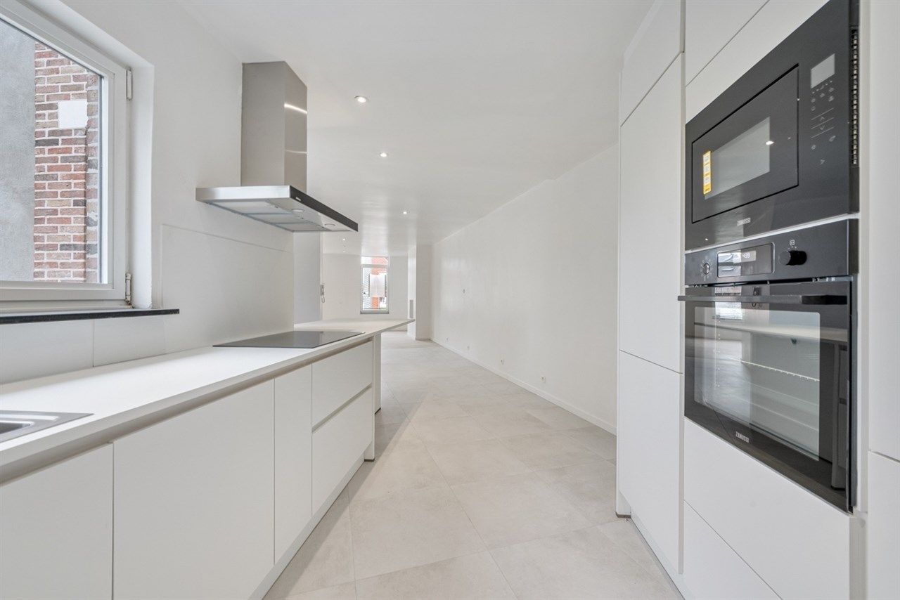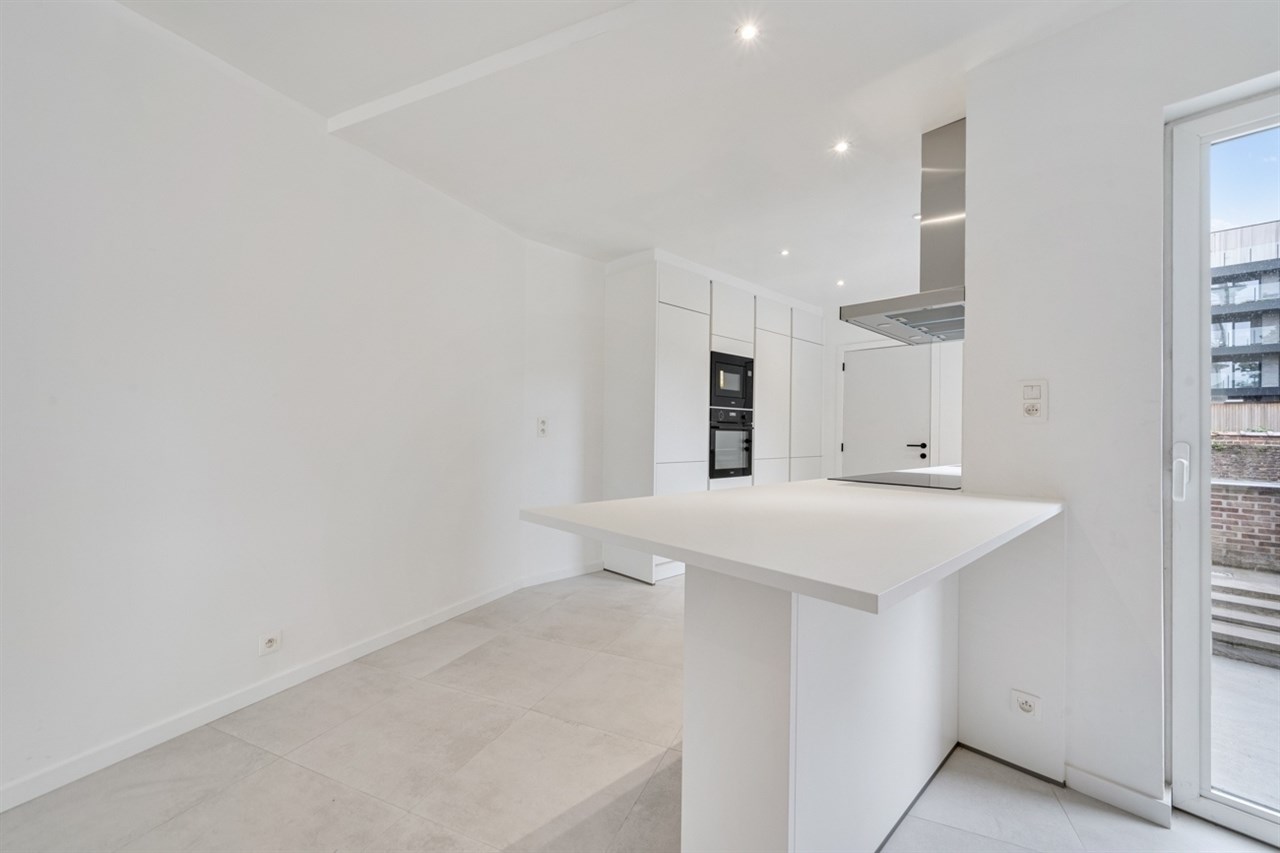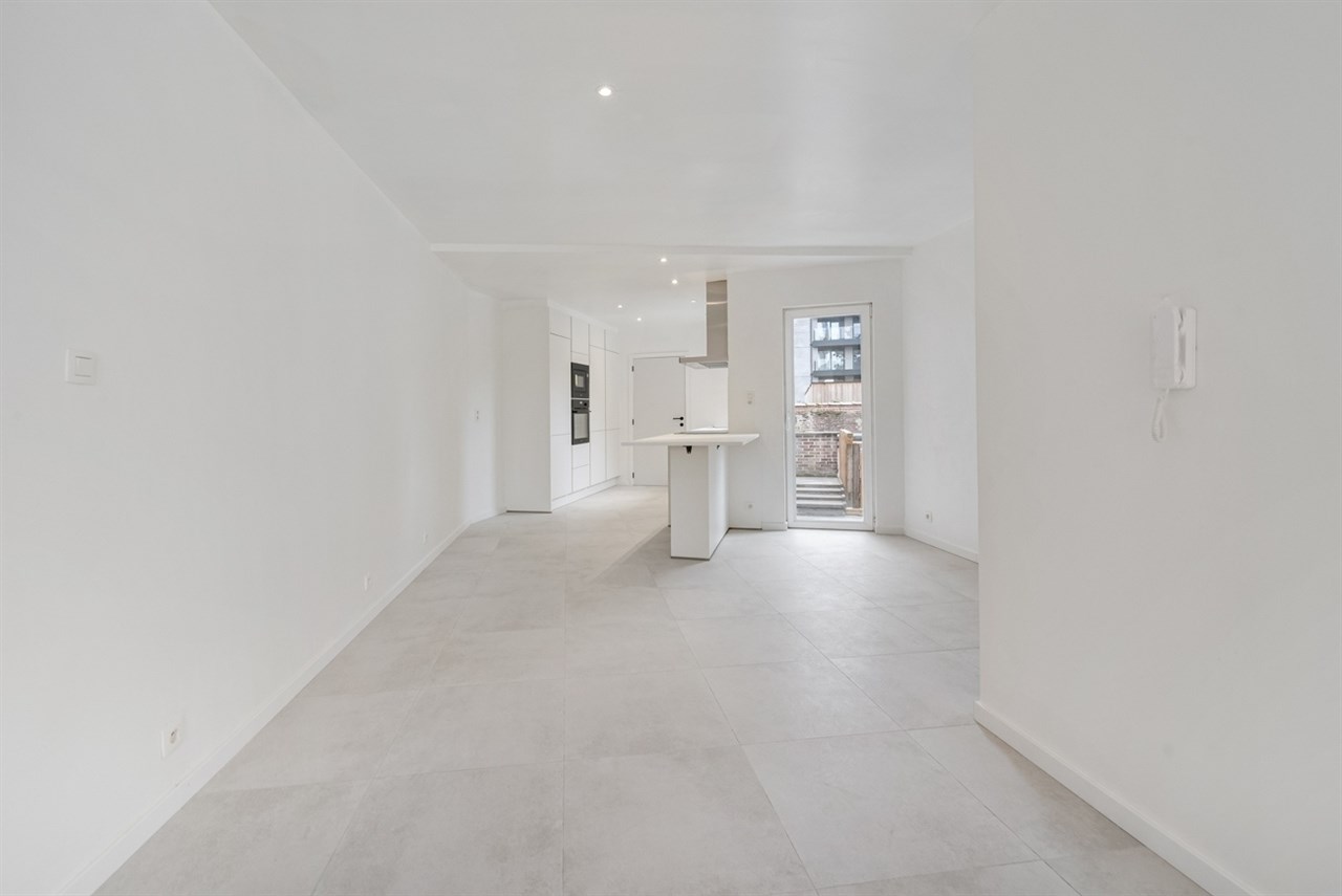 Het appartement werd in 2025 grondig en met oog voor detail gerenoveerd. Alles werd aangepakt: van technieken en isolatie tot vloeren, keuken en badkamer. Bij het binnenkomen valt meteen de lichtrijke en ruime leefruimte op, waar grote ramen zorgen voor een aangename lichtinval. De open keuken met centraal kookeiland vormt het kloppend hart van de woning en is volledig uitgerust met kwaliteitsvolle toestellen, waaronder een inductiekookplaat, dampkap, spoelbak, vaatwasser, oven en microgolfoven. Dit is de perfecte plek om te koken, te tafelen en gasten te ontvangen.