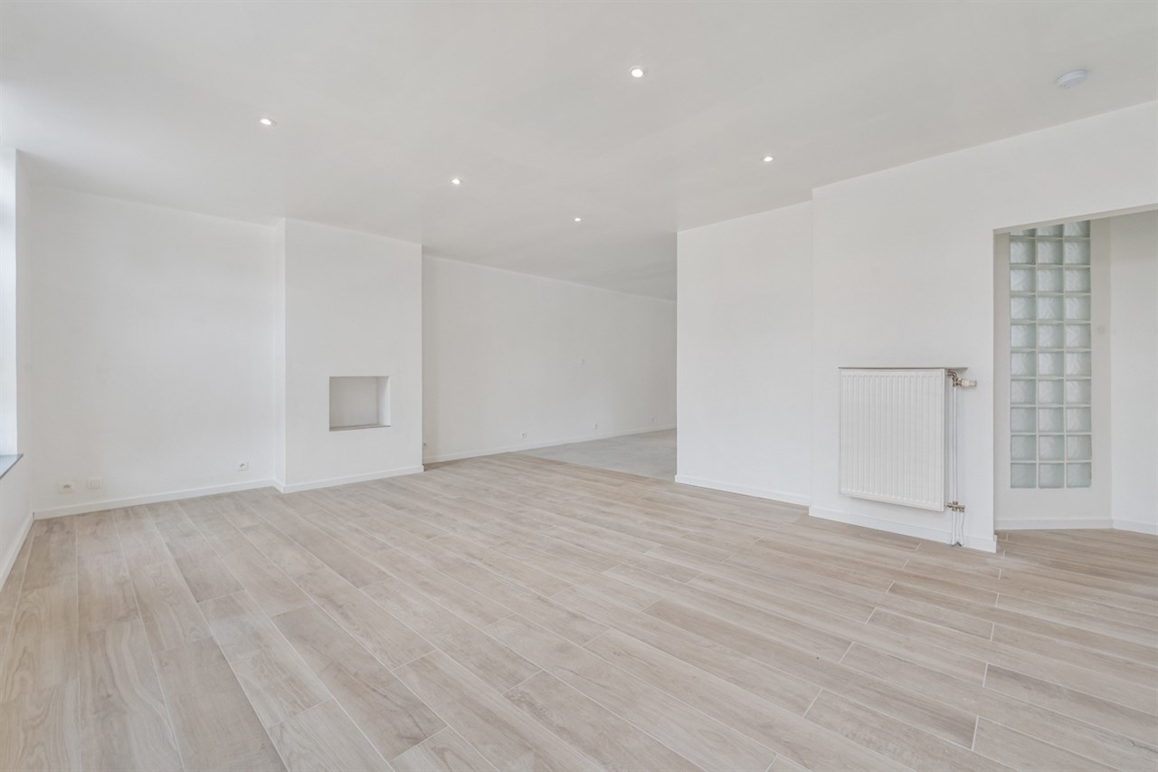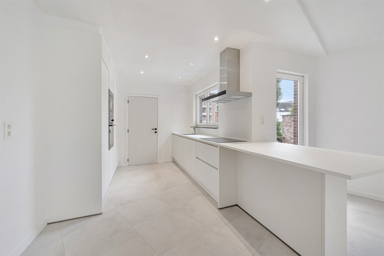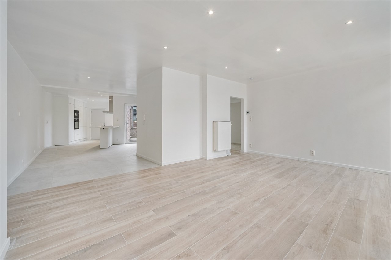 Het appartement werd in 2025 grondig en met oog voor detail gerenoveerd. Alles werd aangepakt: van technieken en isolatie tot vloeren, keuken en badkamer. Bij het binnenkomen valt meteen de lichtrijke en ruime leefruimte op, waar grote ramen zorgen voor een aangename lichtinval. De open keuken met centraal kookeiland vormt het kloppend hart van de woning en is volledig uitgerust met kwaliteitsvolle toestellen, waaronder een inductiekookplaat, dampkap, spoelbak, vaatwasser, oven en microgolfoven. Dit is de perfecte plek om te koken, te tafelen en gasten te ontvangen.