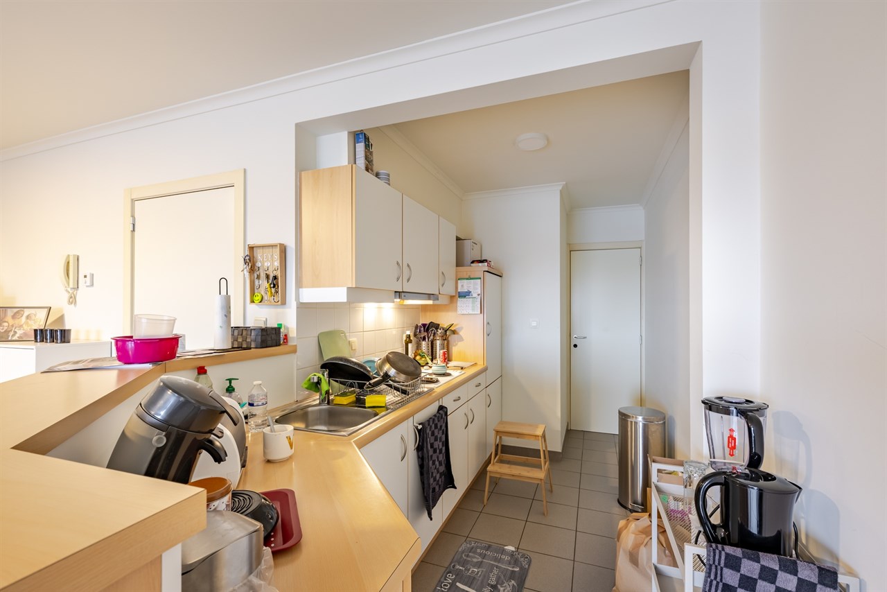 Indeling: woonkamer met open keuken, slaapkamer en badkamer.