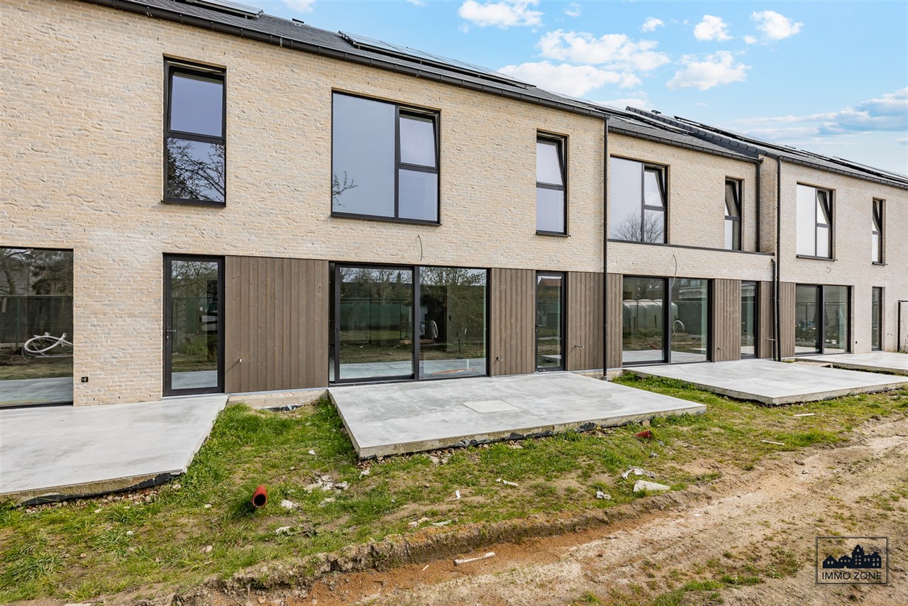 Je betreedt de woning in de inkomhal waar zich ook het afzonderlijke gastentoilet bevindt. Wanneer je verder doorloopt kom je uit in de ruime woonkamer waar de open keuken volledig mee geïntegreerd is in het geheel. De keuken is ook nog voorzien van een handige berging. Vanuit de woonkamer kijk je uit op je eigen groene tuin met terras. Vooraan de woning vind je ook nog een praktische fietsenberging met houtafwerking. Op de eerste verdieping vind je de 3 ruime slaapkamers, de volledig uitgeruste badkamer en nog een apart toilet. Op de tweede verdieping is kan u de vierde slaapkamer terugvinden. Er zijn 2 woningen van dit type beschikbaar. Heb je vragen of wil je graag een woordje meer uitleg over het prachtige project? Neem dan contact op via kasper.maes@immo-zone.be of op het telefoonnummer 0470 50 98 57.