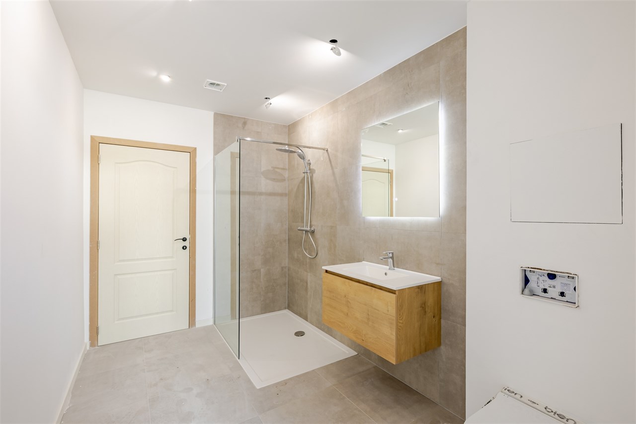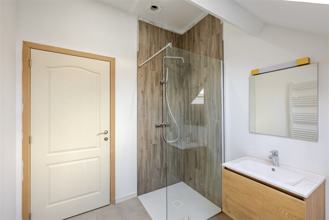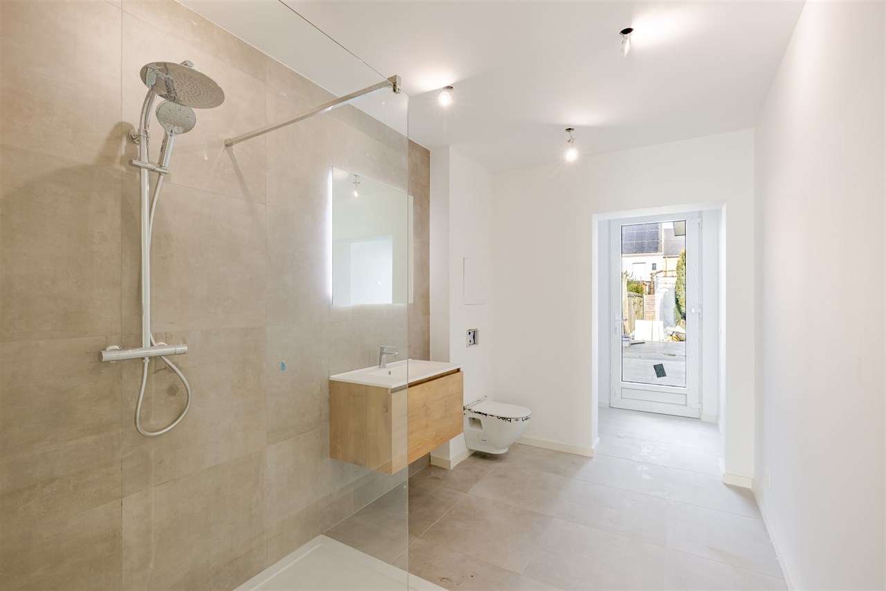 De bovenverdieping omvat drie mooi afgewerkte slaapkamers (11 m², 12 m² en 10 m²), ideaal als master bedroom, kinderkamers of bureau. Daarnaast is er een moderne badkamer met inloopdouche, perfect voor wie houdt van comfort en gebruiksgemak. Een apart toilet maakt deze verdieping compleet.