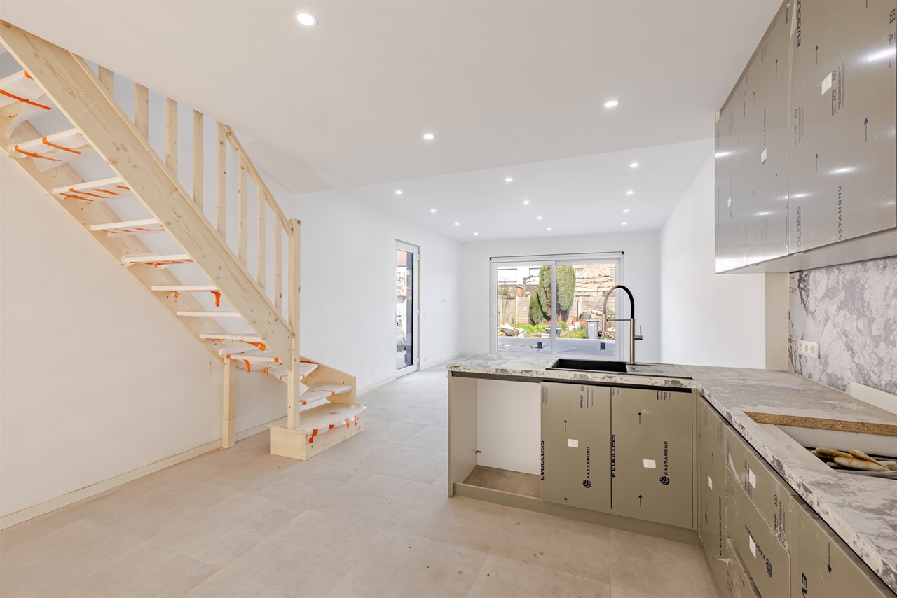 De woning is rustig gelegen in een omgeving waar groen, ontspanning en gezelligheid centraal staan. Bij het binnenkomen via de inkomhal wordt u meteen verwelkomd in een lichtrijke en ruime leefruimte met open keuken. De grote ramen zorgen voor een aangename lichtinval en bieden een mooi zicht op de tuin – een ideale plek om te ontspannen of gezellig samen te zijn.
