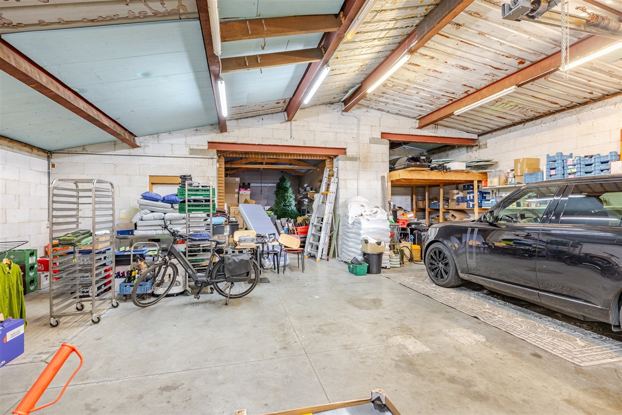Achteraan het gebouw is er een groot atelier/magazijn, perfect voor stockage of bijkomende activiteiten. Bovendien beschikt het terrein over ruime parkeermogelijkheden, een belangrijke troef langs deze drukke verkeersader.